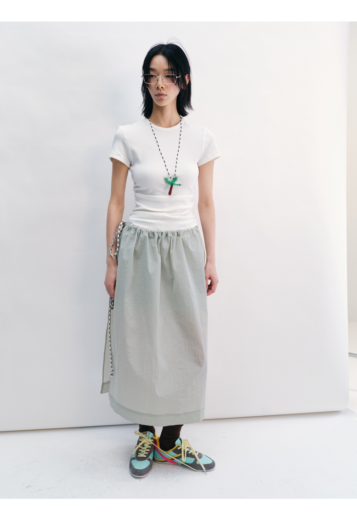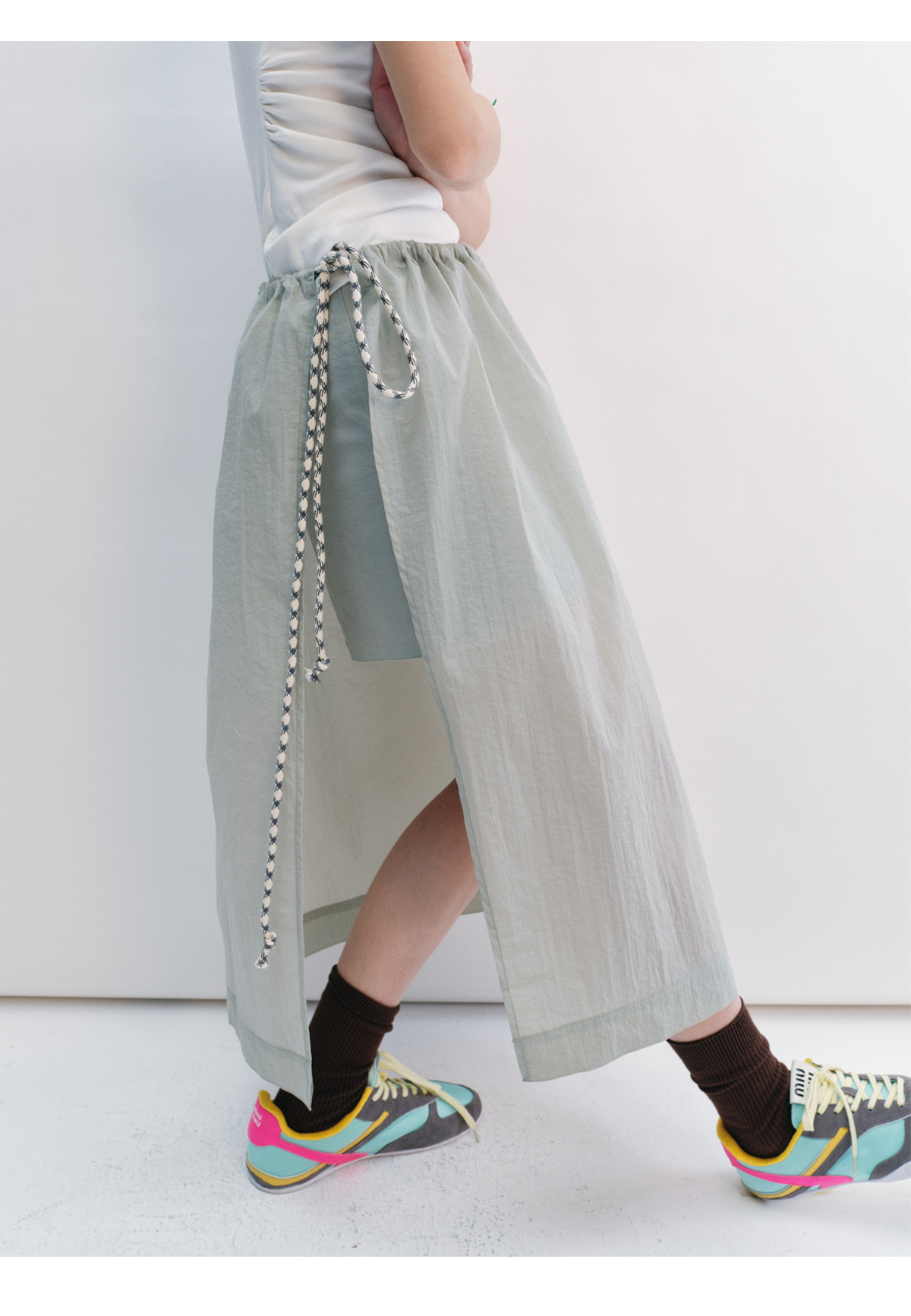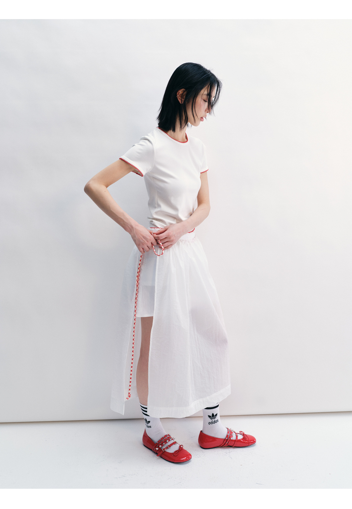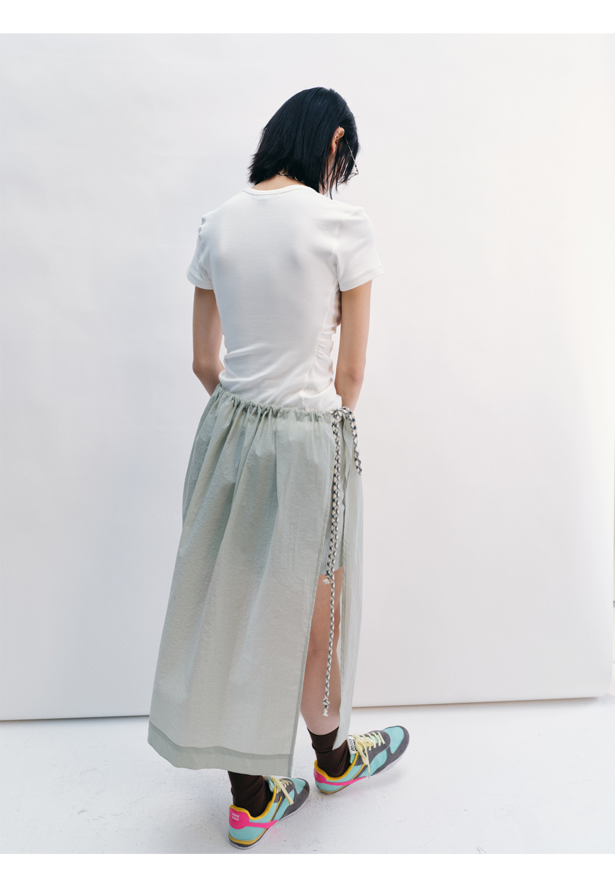 [시티] 신상 캐주얼 솔리드 컬러 투명 멀티 레이어 스플라이싱 스커트 여성용 초단기 다리 노출 스커트 V8746