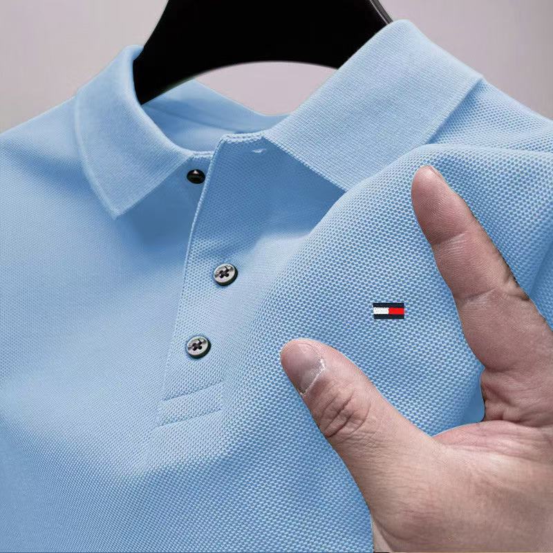 국경 간 폴로 셔츠 뜨거운 판매 거리 유행 브랜드 TOMMY 수놓은 짧은 소매 느슨한 남성용 캐주얼 옷깃 올 매치 티셔츠