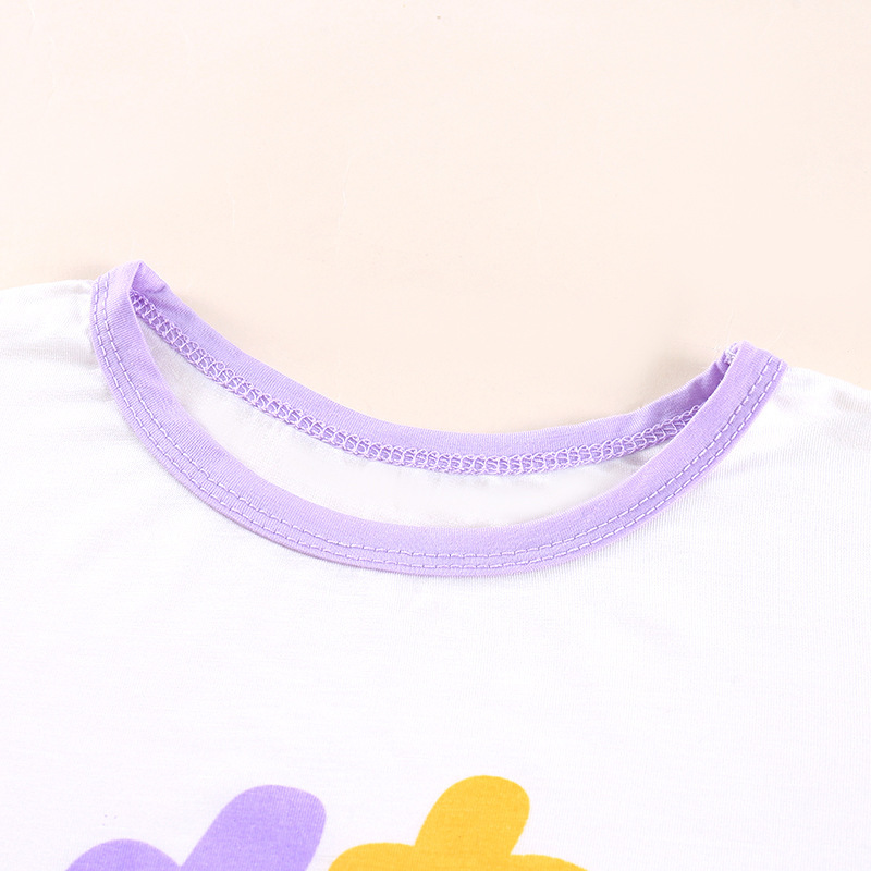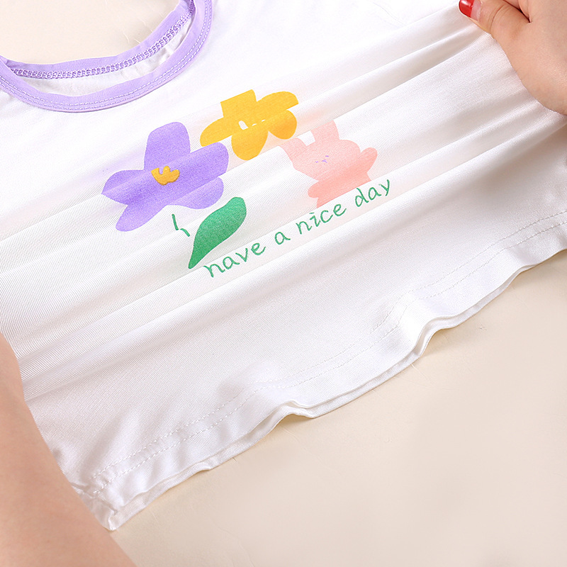 여아용 잠옷 세트 레이스 세미슬리브 라운드넥 홈웨어 모달 9부 바지 A급 만화 프린트 여름 스타일스토어 가기