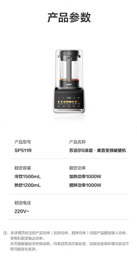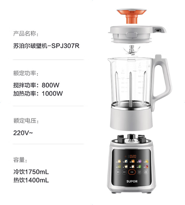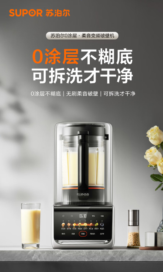 Supor 벽파괴기 0 코팅 SP511R 탈부착 및 세척 가능 예약 가정용 두유 1.5L 요리 보조 주스 추출기스토어 가기