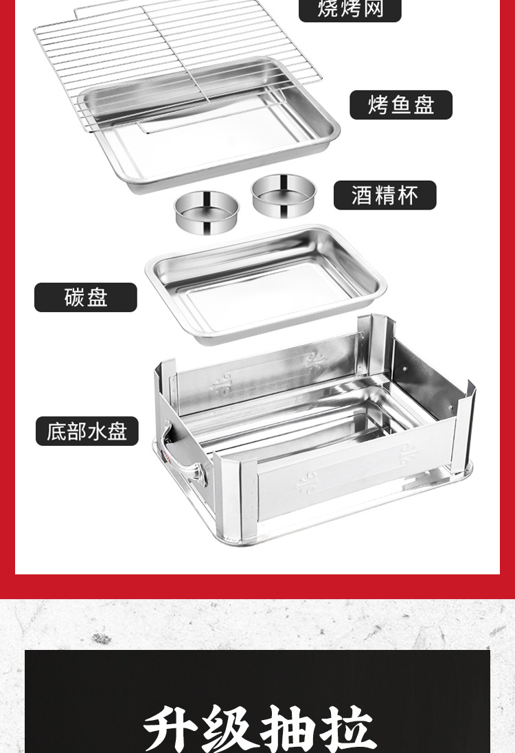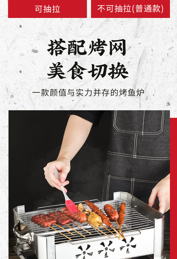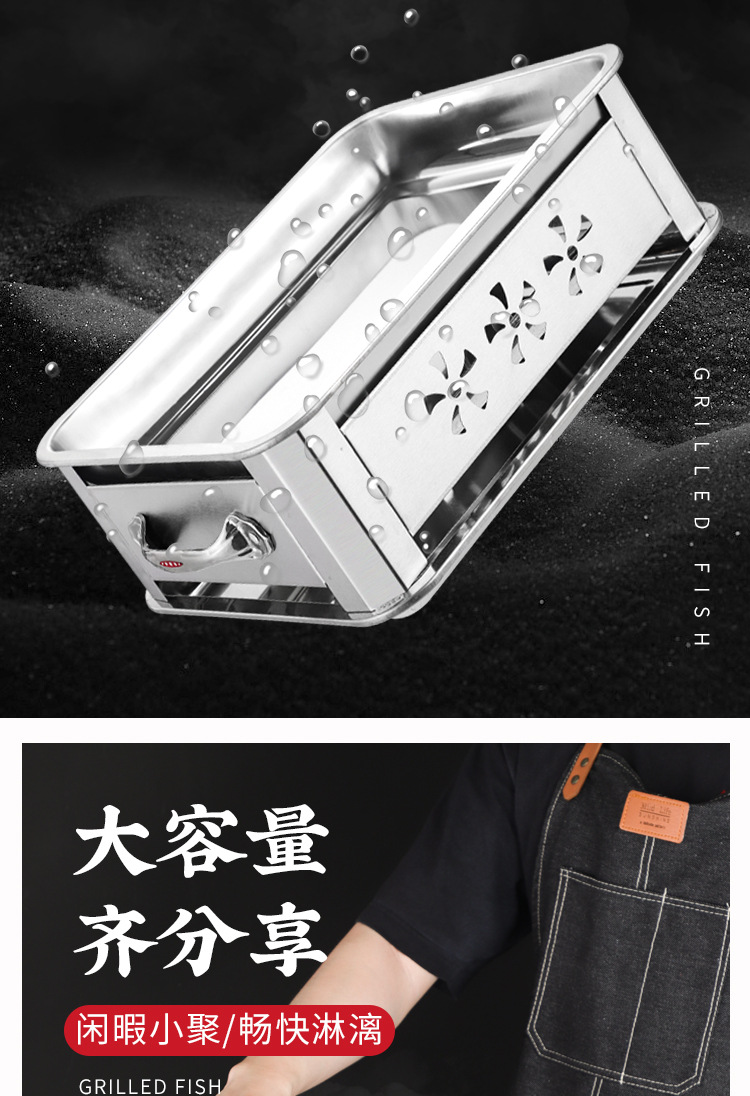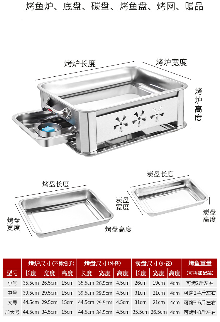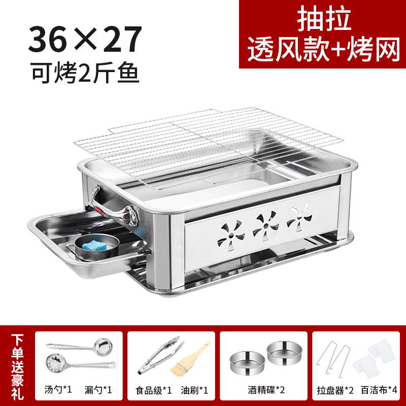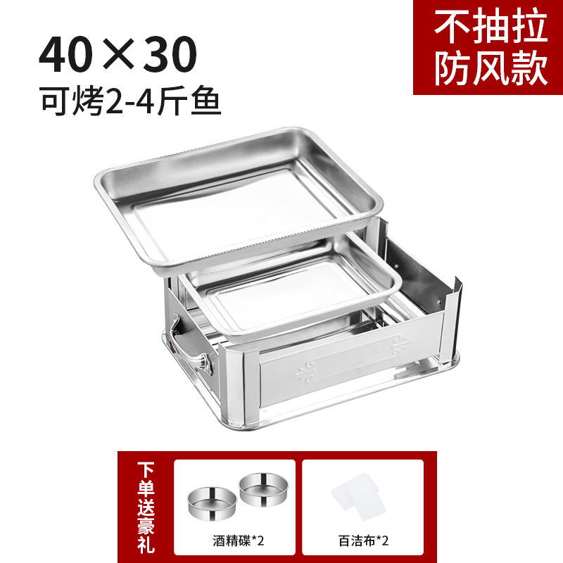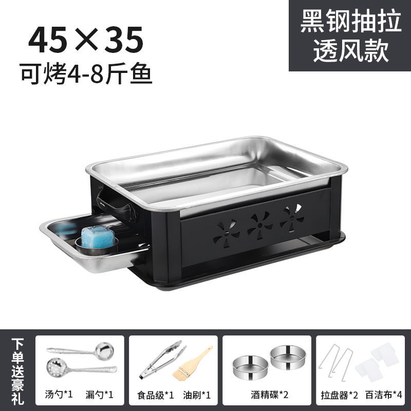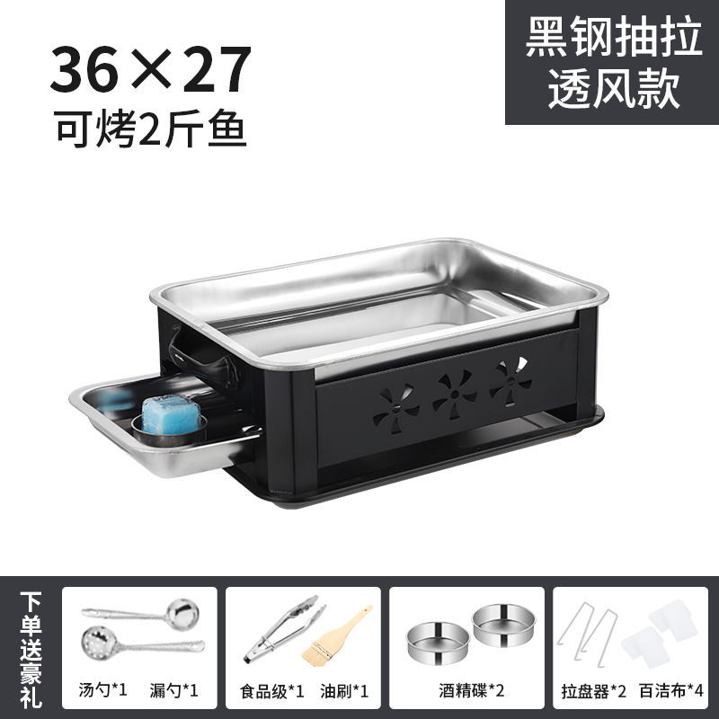 생선 구이 오븐 스테인레스 스틸 상업용 레스토랑 생선 구이 접시 가정용 숯불 그릴 무연 숯불 오븐 직사각형 알코올 스토브스토어 가기