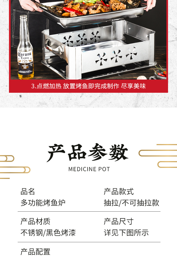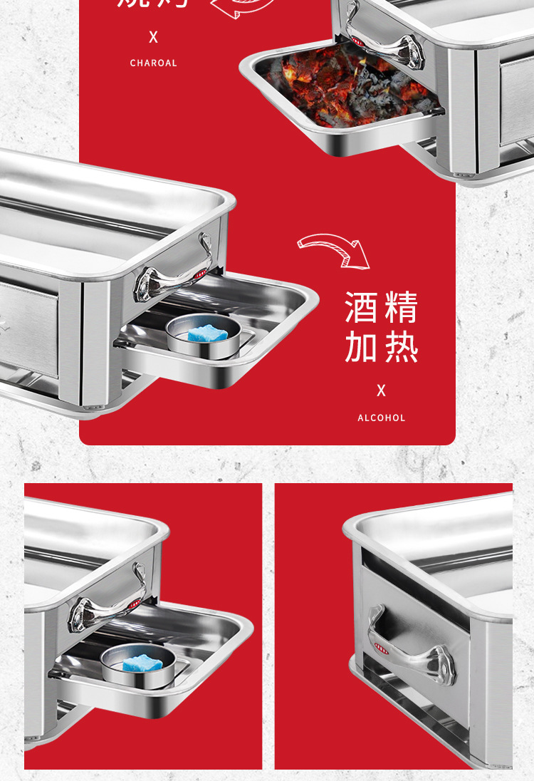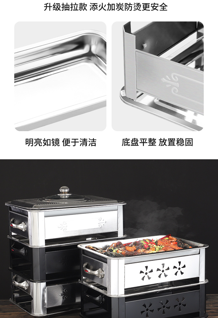 생선 구이 오븐 스테인레스 스틸 상업용 레스토랑 생선 구이 접시 가정용 숯불 그릴 무연 숯불 오븐 직사각형 알코올 스토브