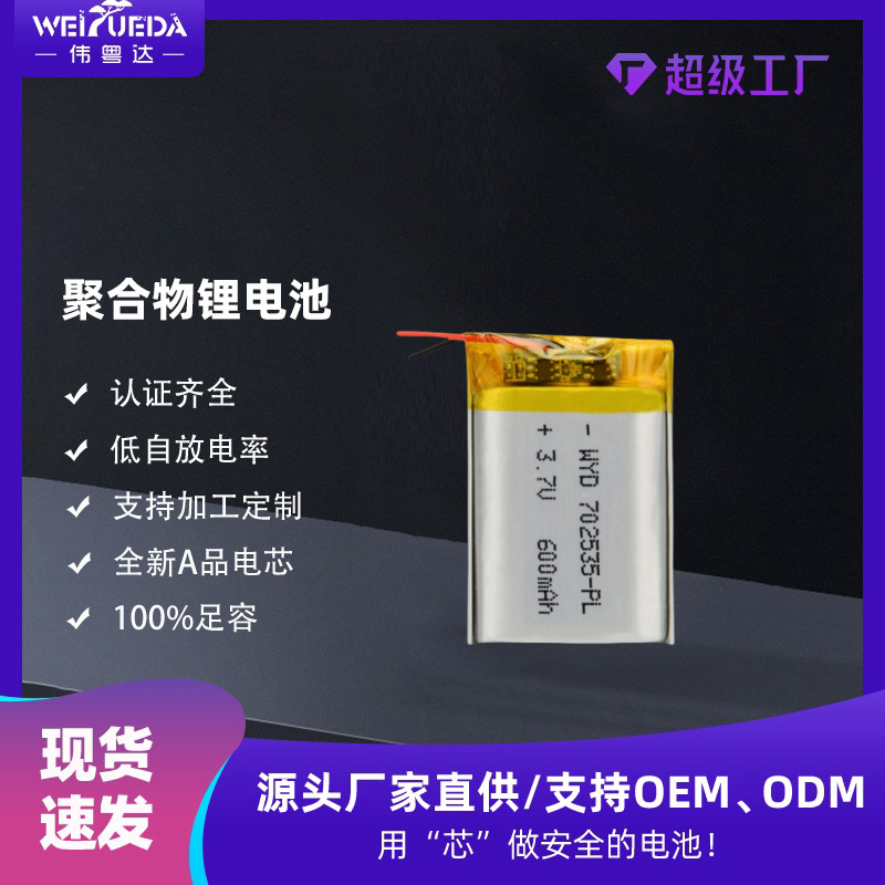 702535 폴리머 리튬 배터리 600mAh 3.7V 일렉트릭 기타 무선 로케이터 리튬 배터리 고에너지