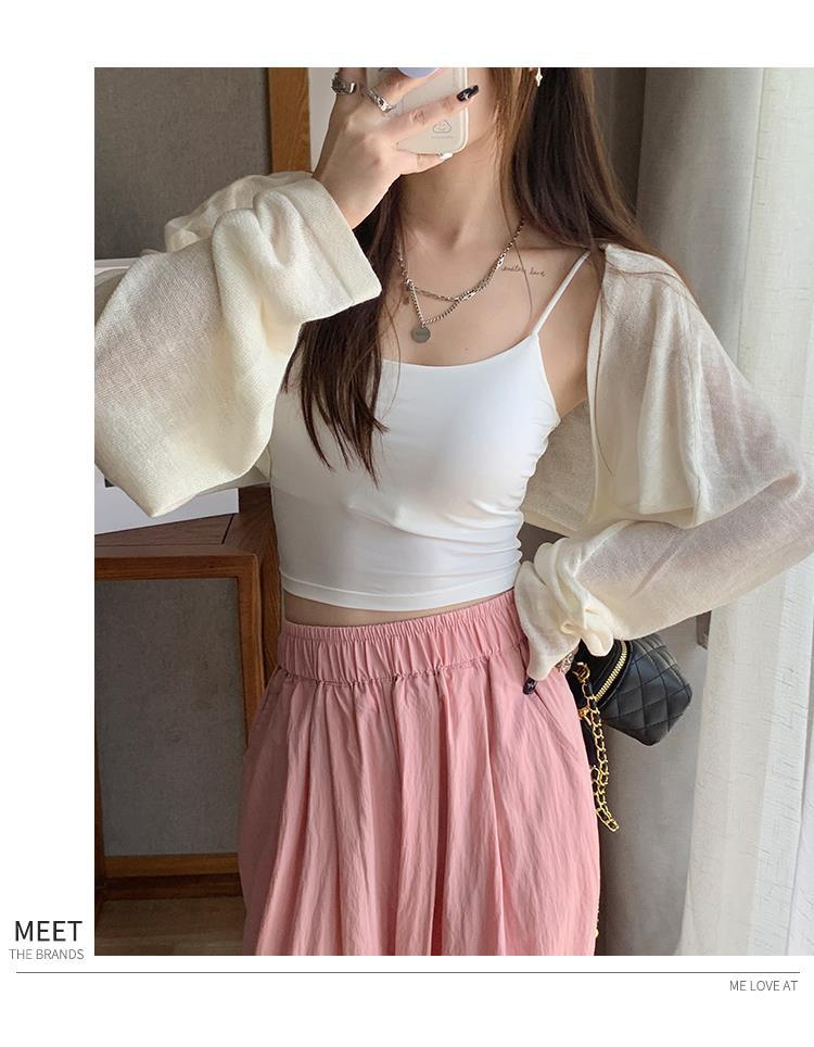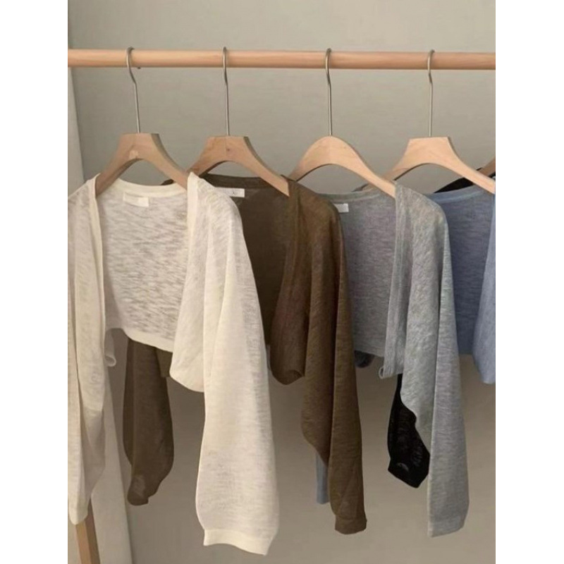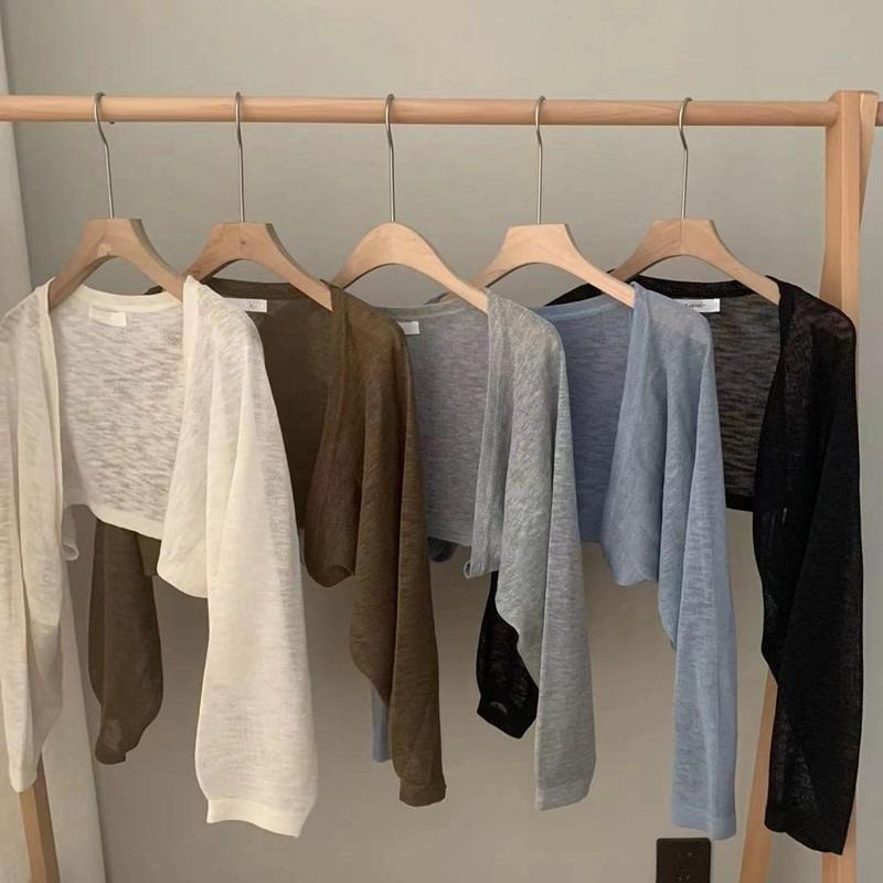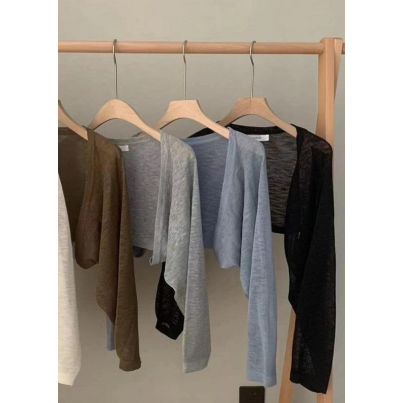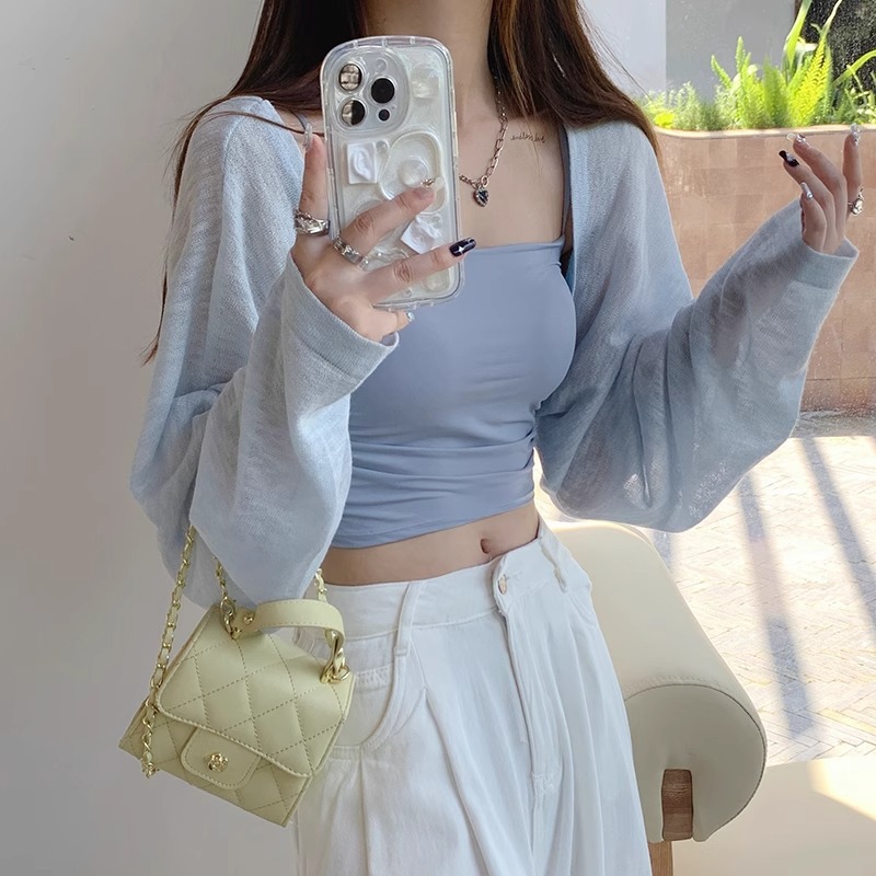 선 스크린 카디건 얇은 외부 착용 작은 코트 톱 목도리 웨이스트 코트 여성용 툴레 여름 긴 스커트스토어 가기