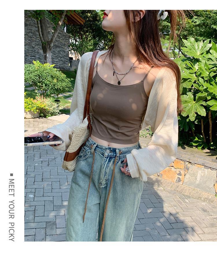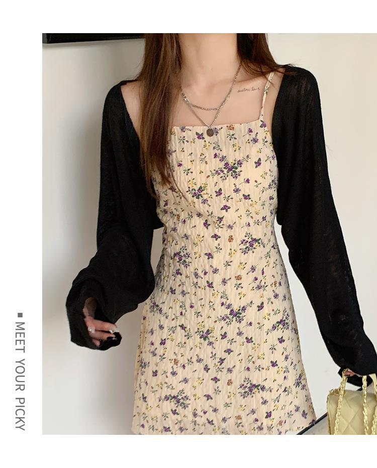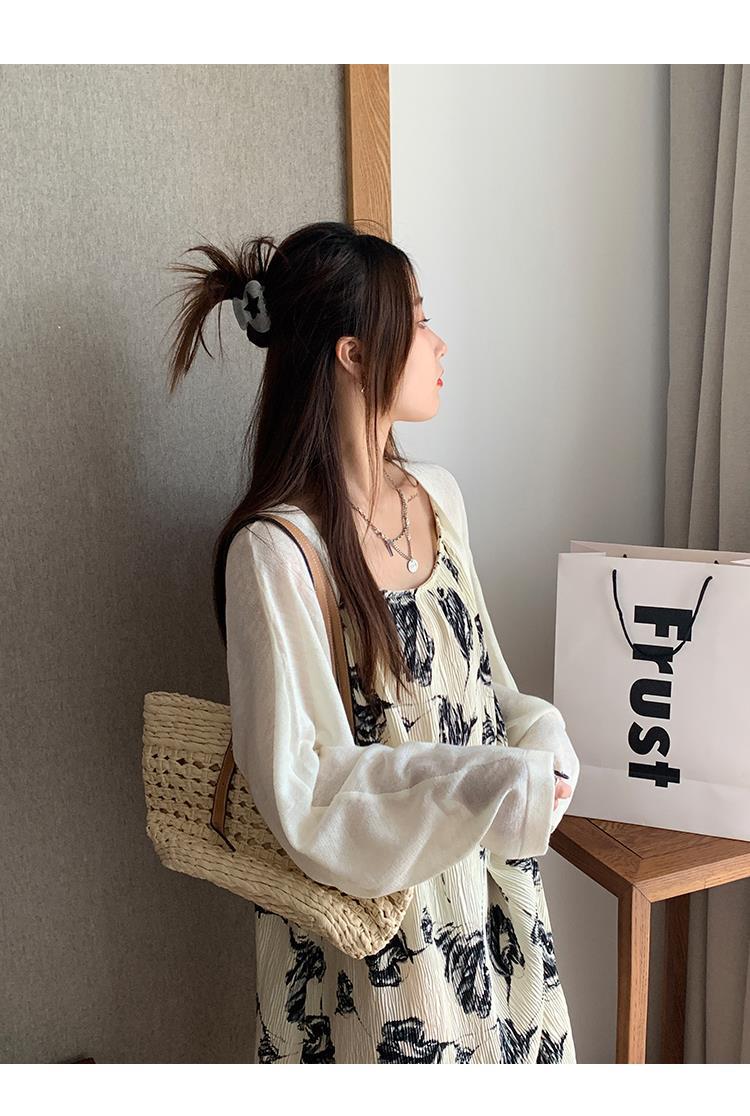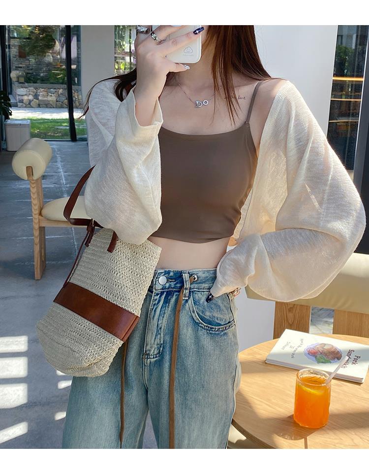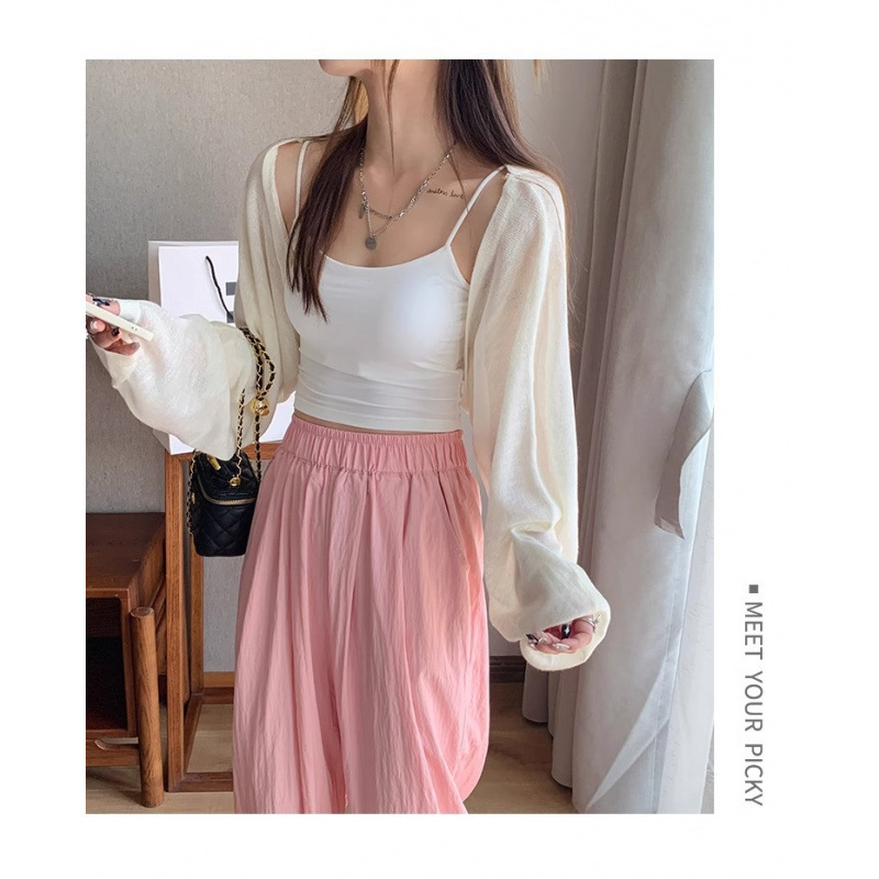 선 스크린 카디건 얇은 외부 착용 작은 코트 톱 목도리 웨이스트 코트 여성용 툴레 여름 긴 스커트스토어 가기