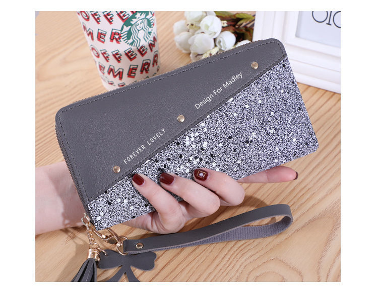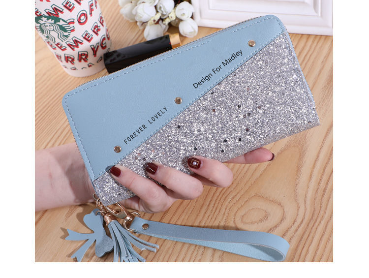 2022 새로운 지갑 긴 여성 지퍼 지갑 여성 한국어 버전 스플 라이스 대비 색상 술 다목적 카드 홀더 휴대 전화 가방스토어 가기