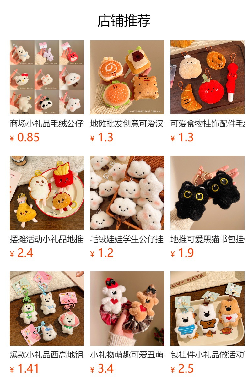 부티크 인형, 이벤트 작은 선물, 열쇠고리, 액세서리, 가방 펜던트, 봉제인형, 노점상, 야시장스토어 가기