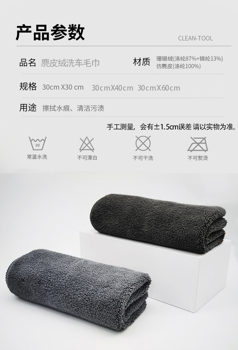 汽车珊瑚绒擦车毛巾双层麂皮绒擦车巾加厚双面洗车毛巾洗车巾