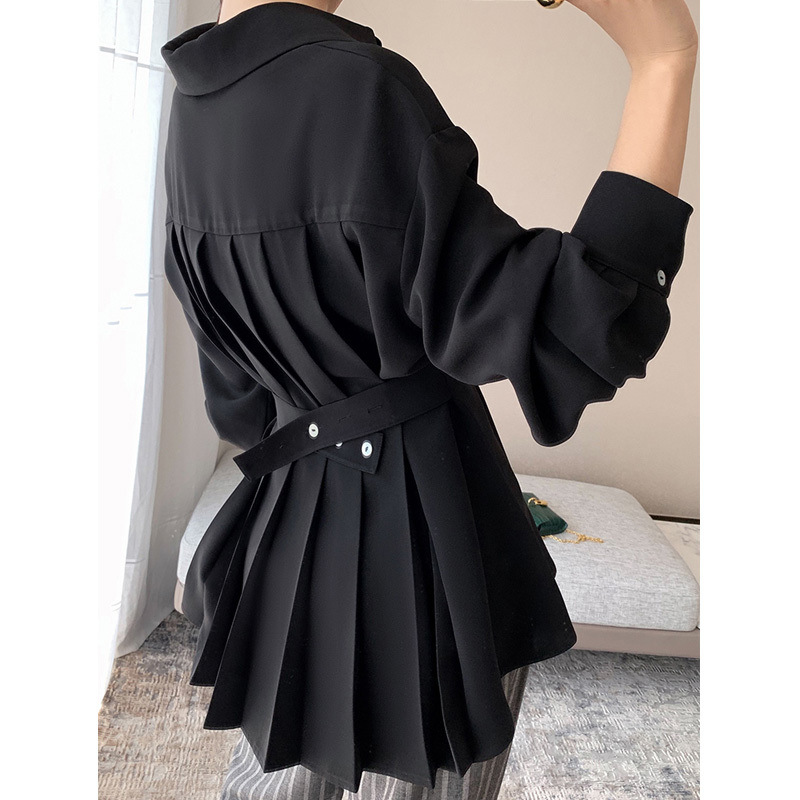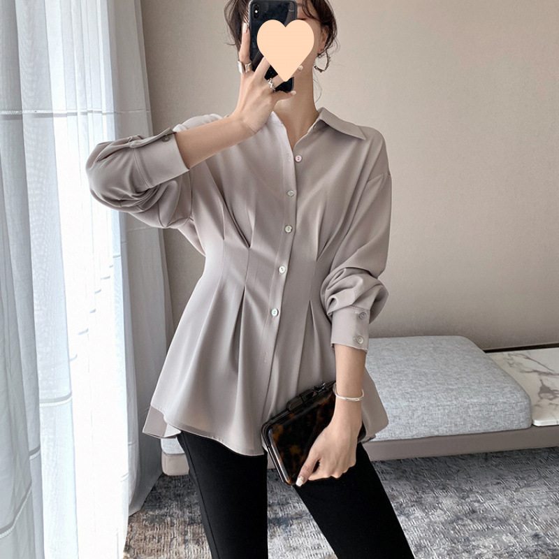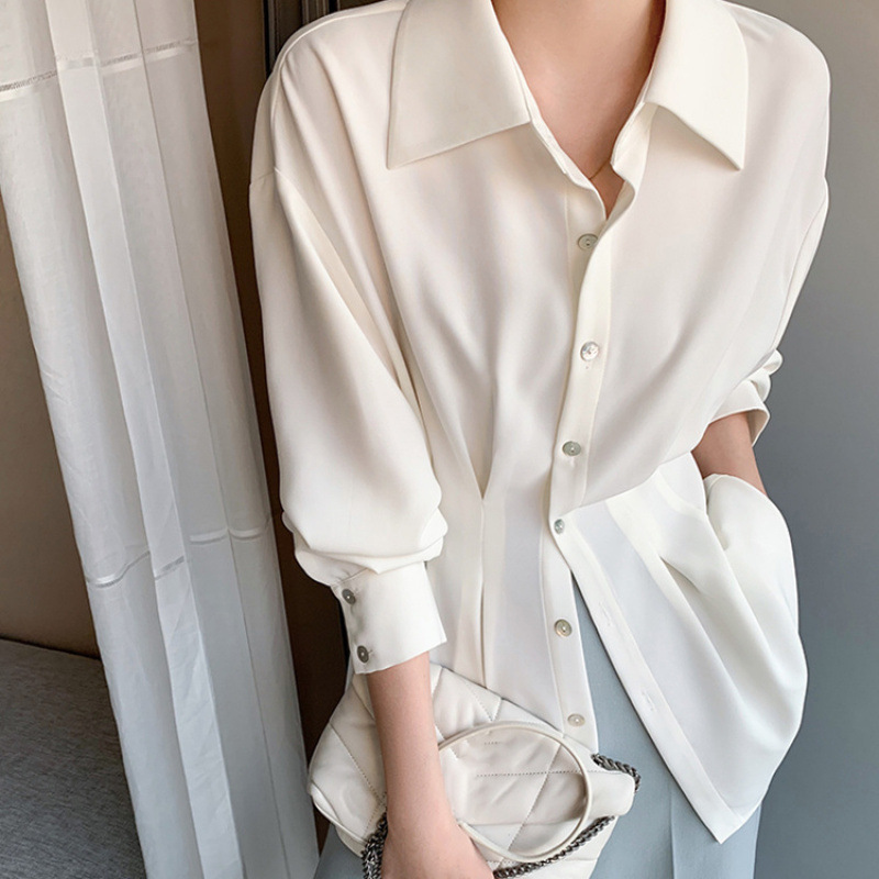 여성용 쉬폰 긴팔 셔츠, 봄, 가을 여성용 디자인 니치 셔츠, 세련된 웨이스트 탑, 가볍고 성숙한 셔츠스토어 가기