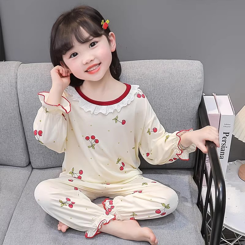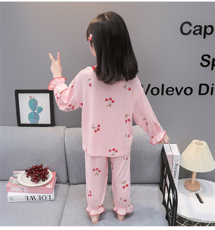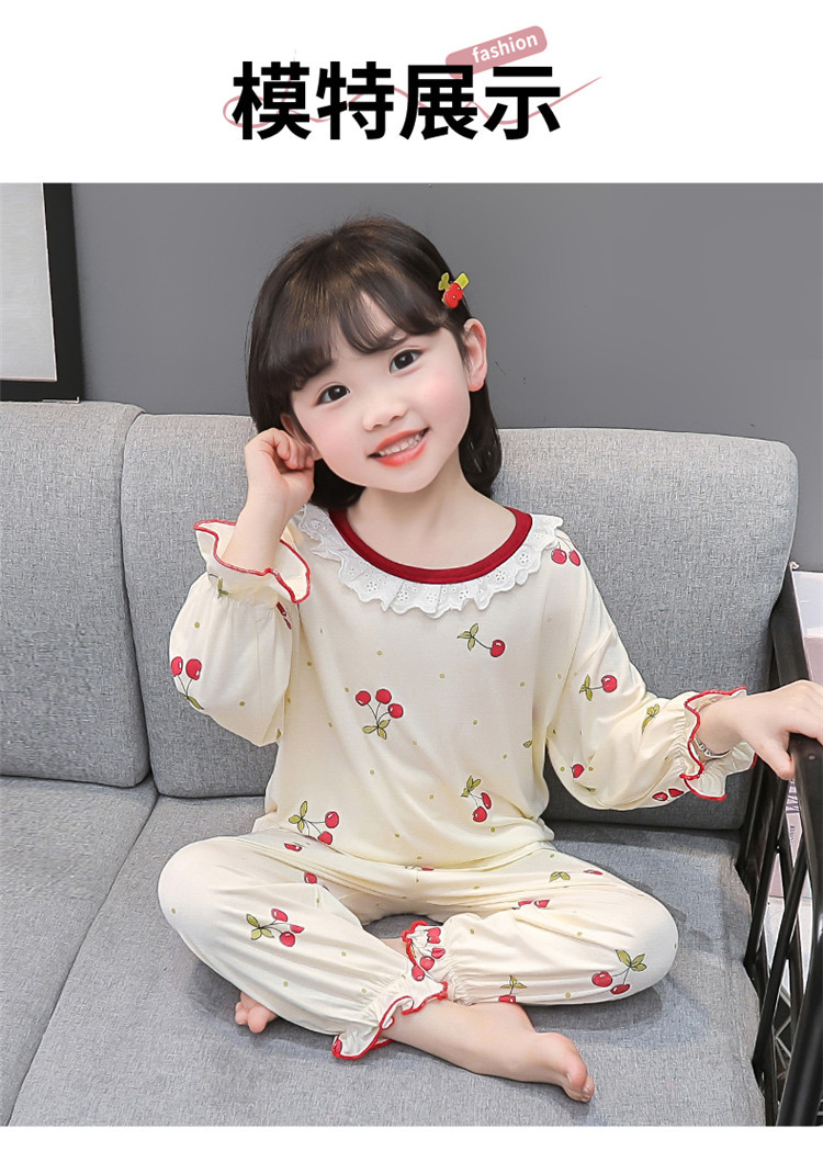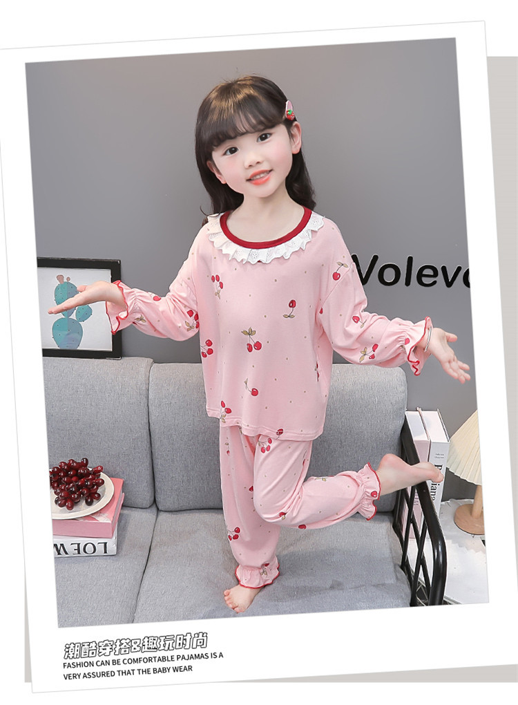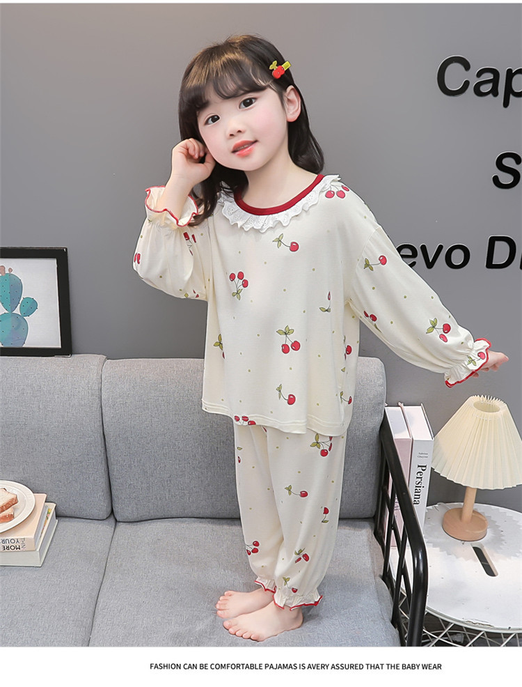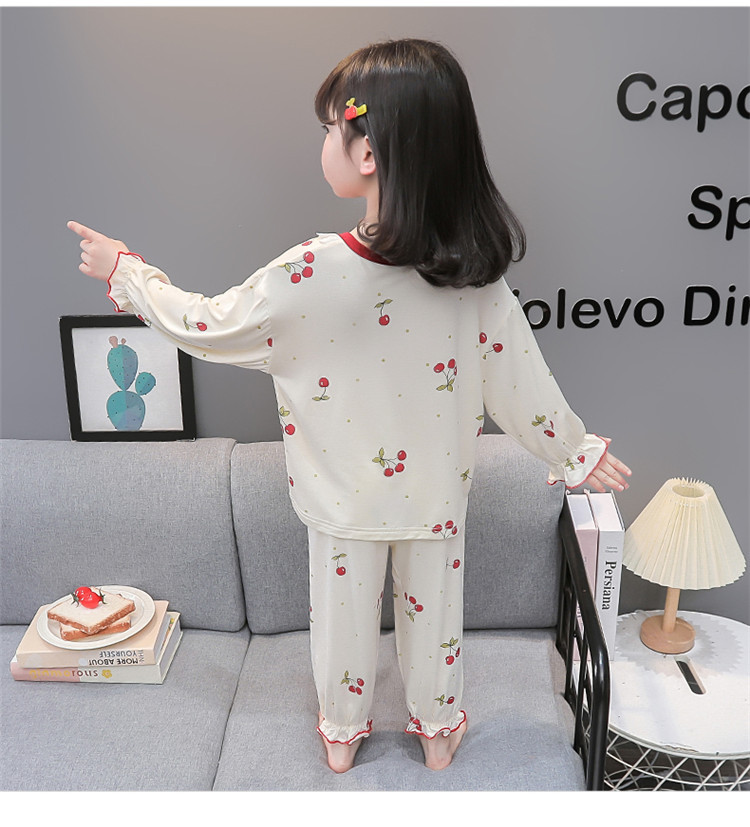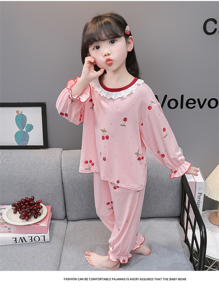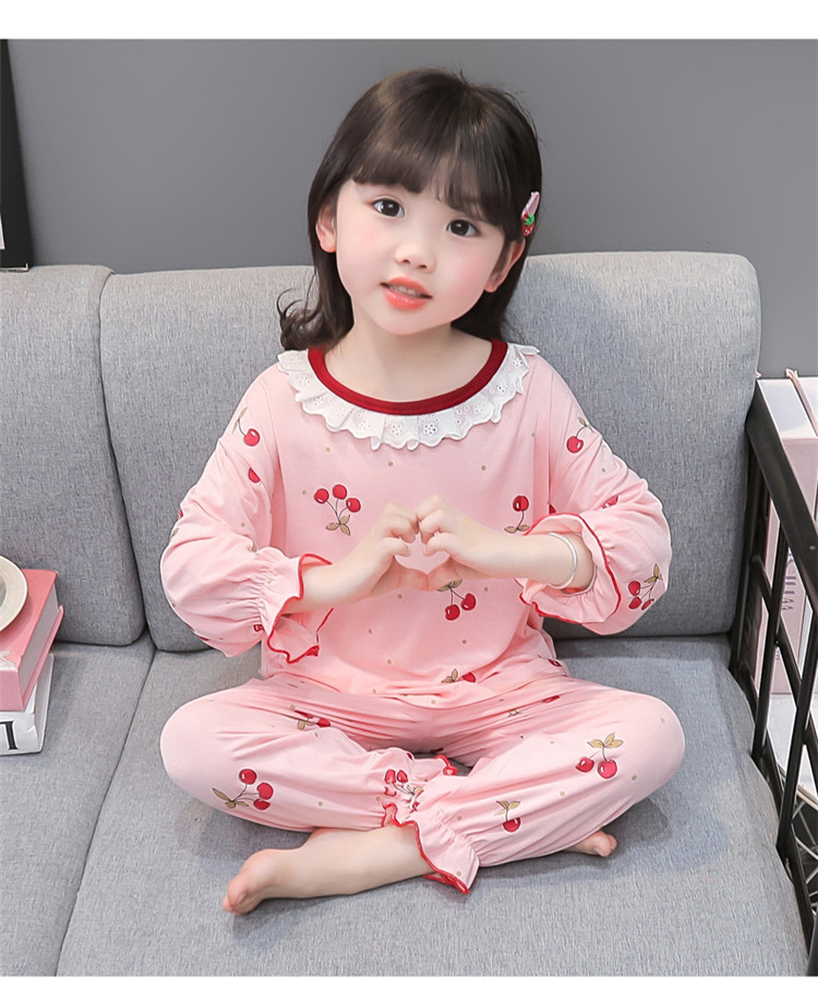 여아 긴 잠옷 모달 봄, 가을 긴팔 새 체리 양복 아동복 아기 에어컨 옷 유행