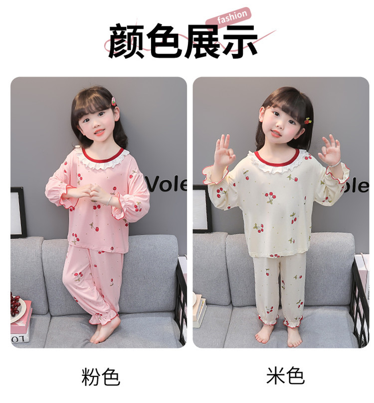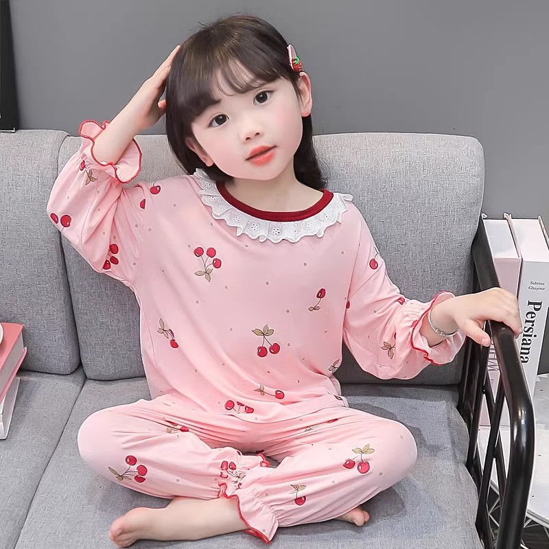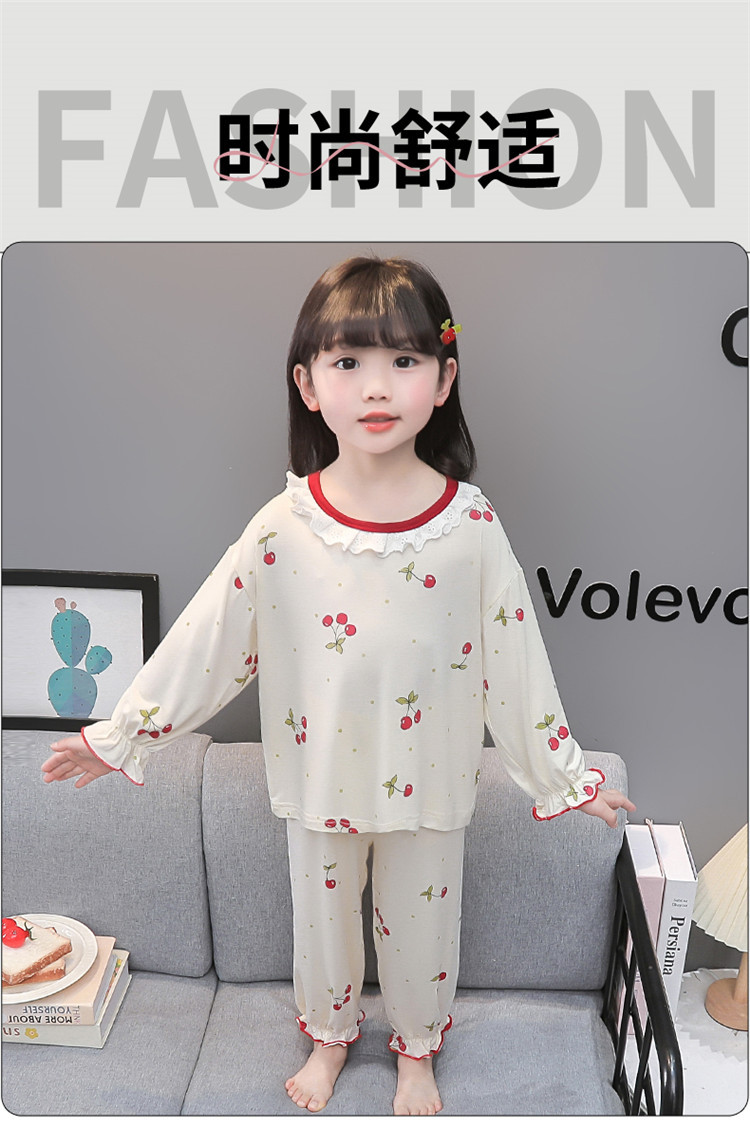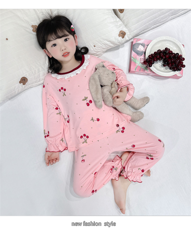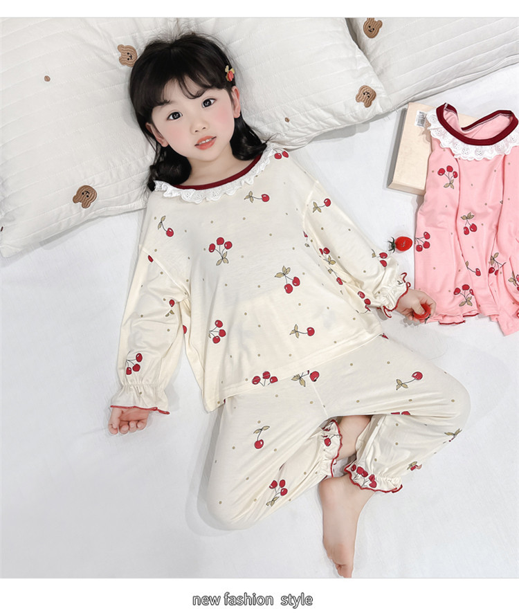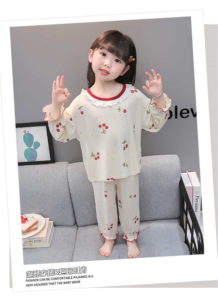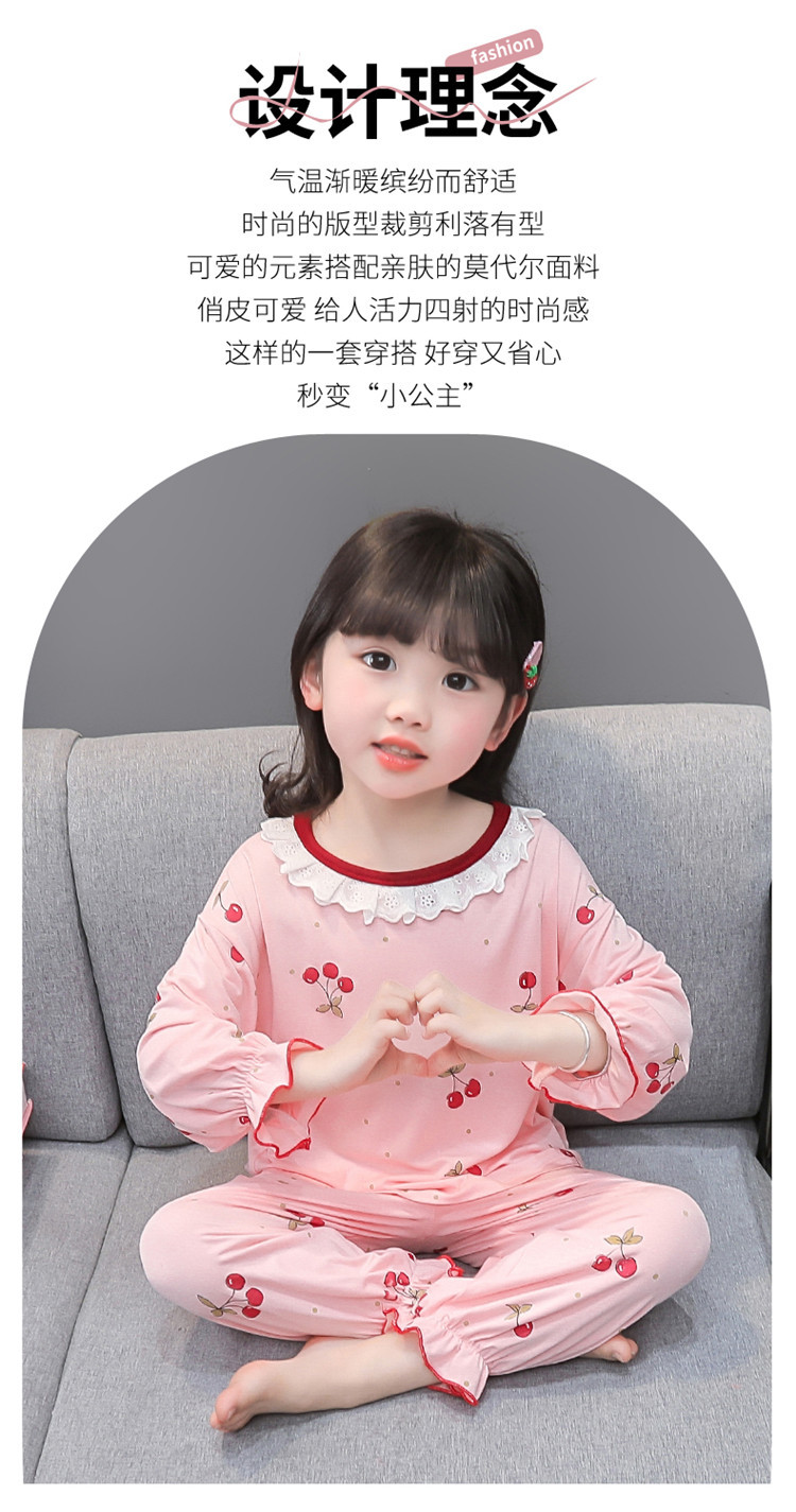 여아 긴 잠옷 모달 봄, 가을 긴팔 새 체리 양복 아동복 아기 에어컨 옷 유행