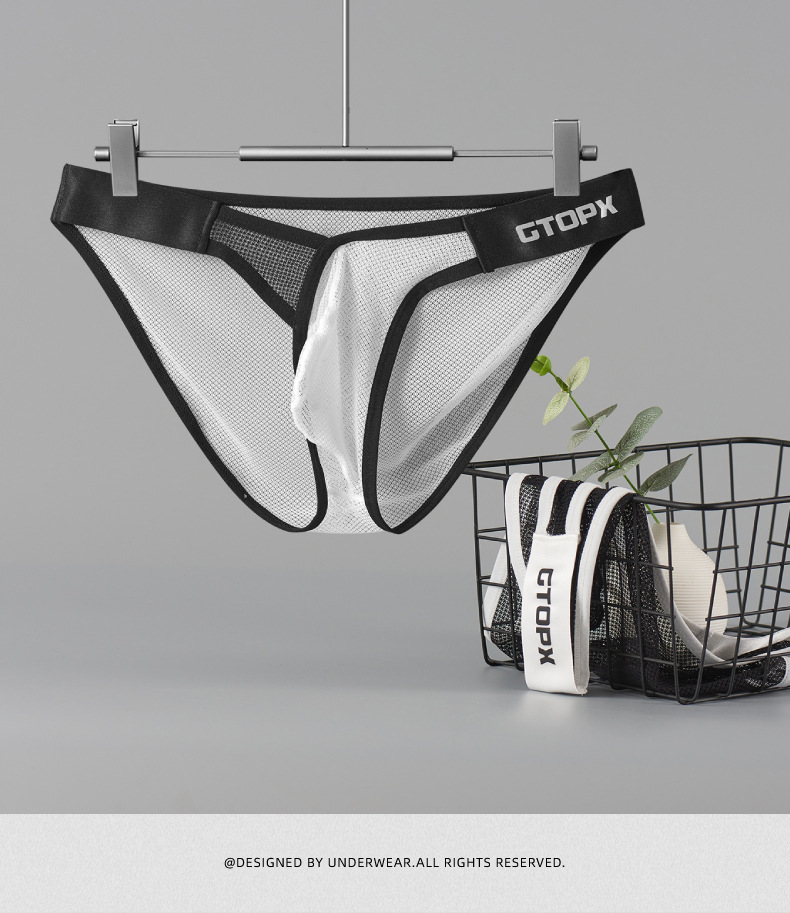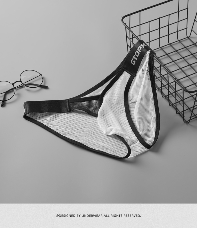 국경 간 폭발 남자 메쉬 아이스 실크 브리프 싱글 레이어 U Convex 관점 메쉬 낮은 허리 섹시한 통기성 바지