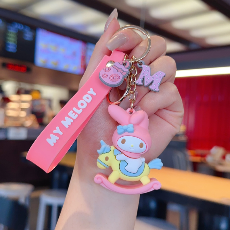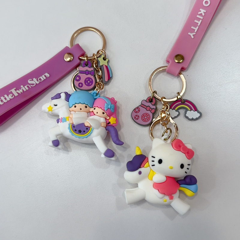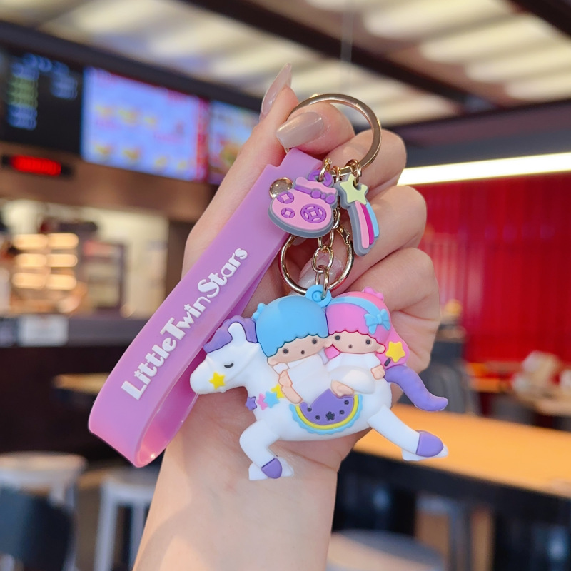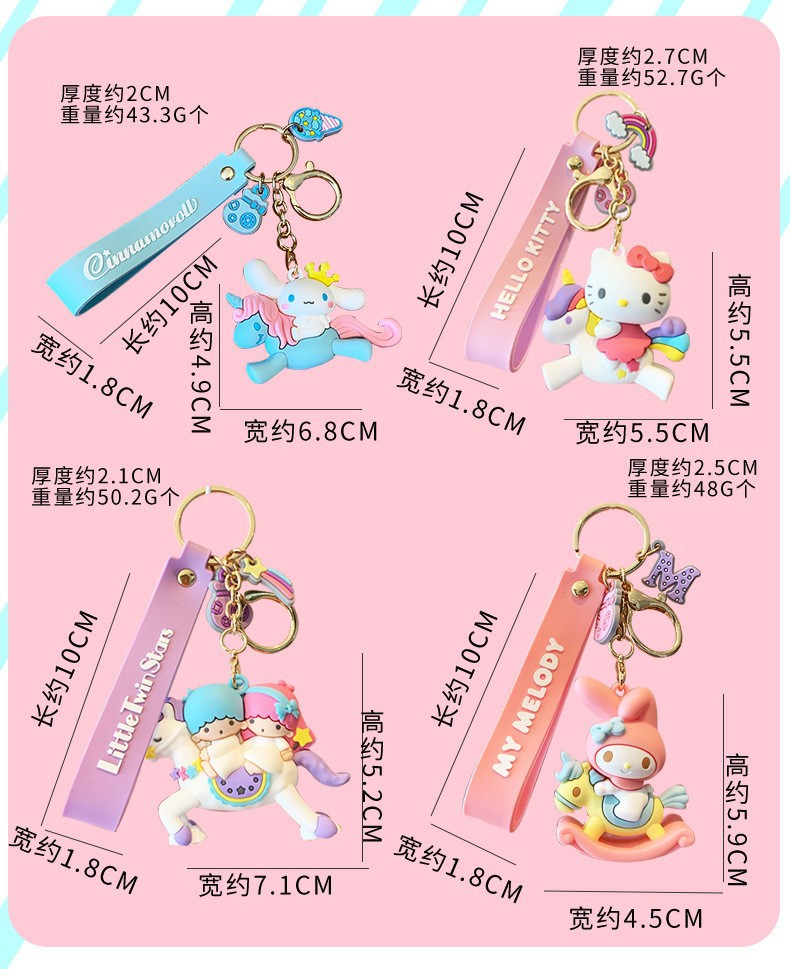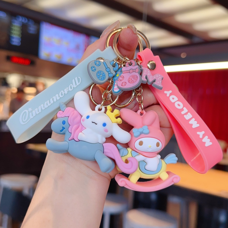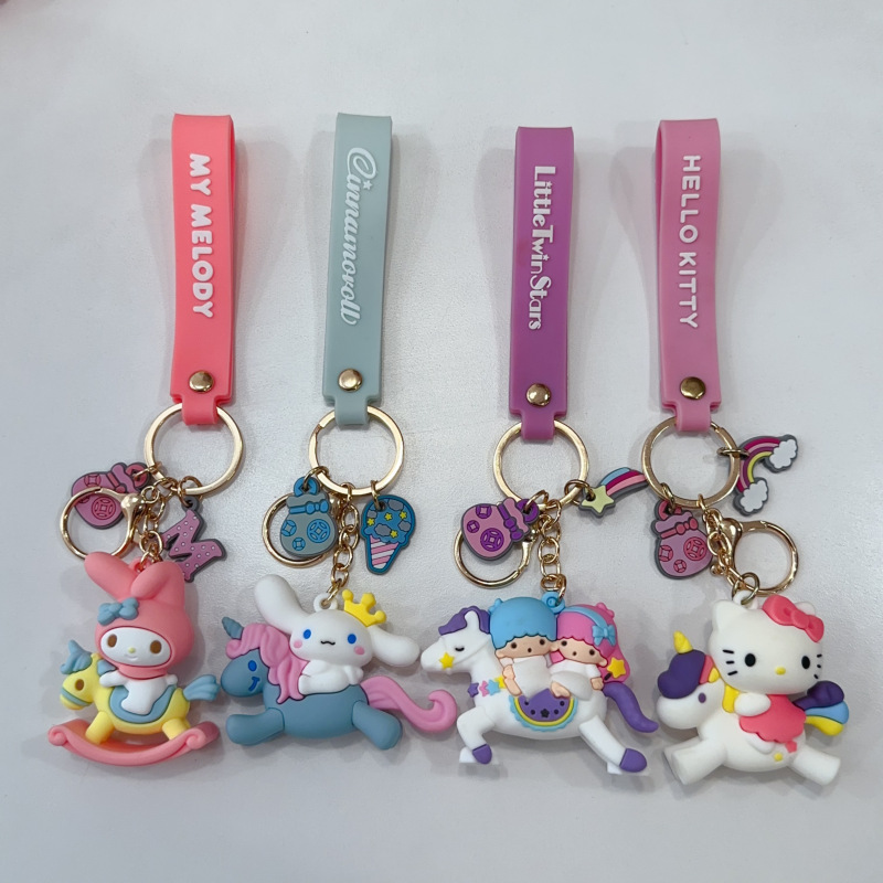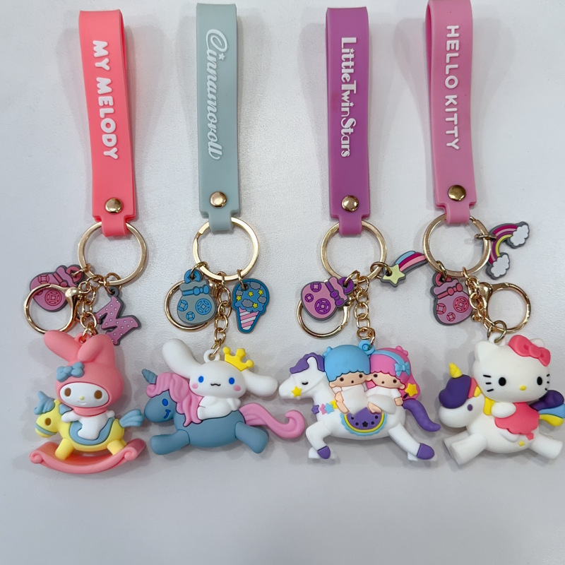 새로운 산리오 유니콘 키 체인 여성 귀여운 만화 큰 귀 개 인형 머로 커플 펜던트 도매