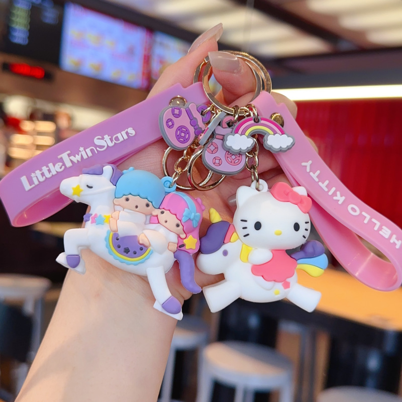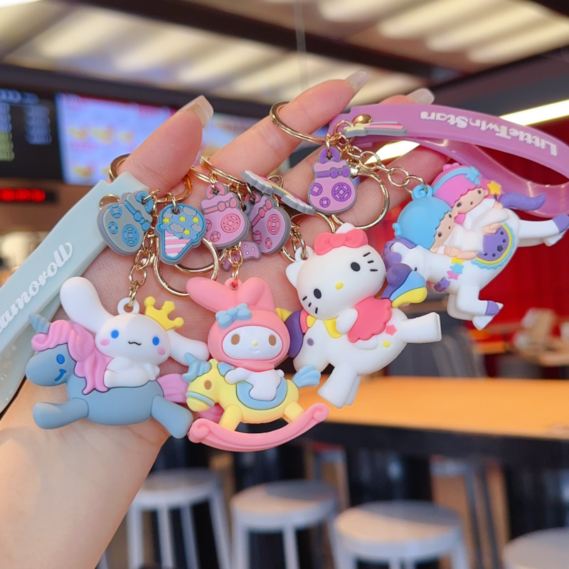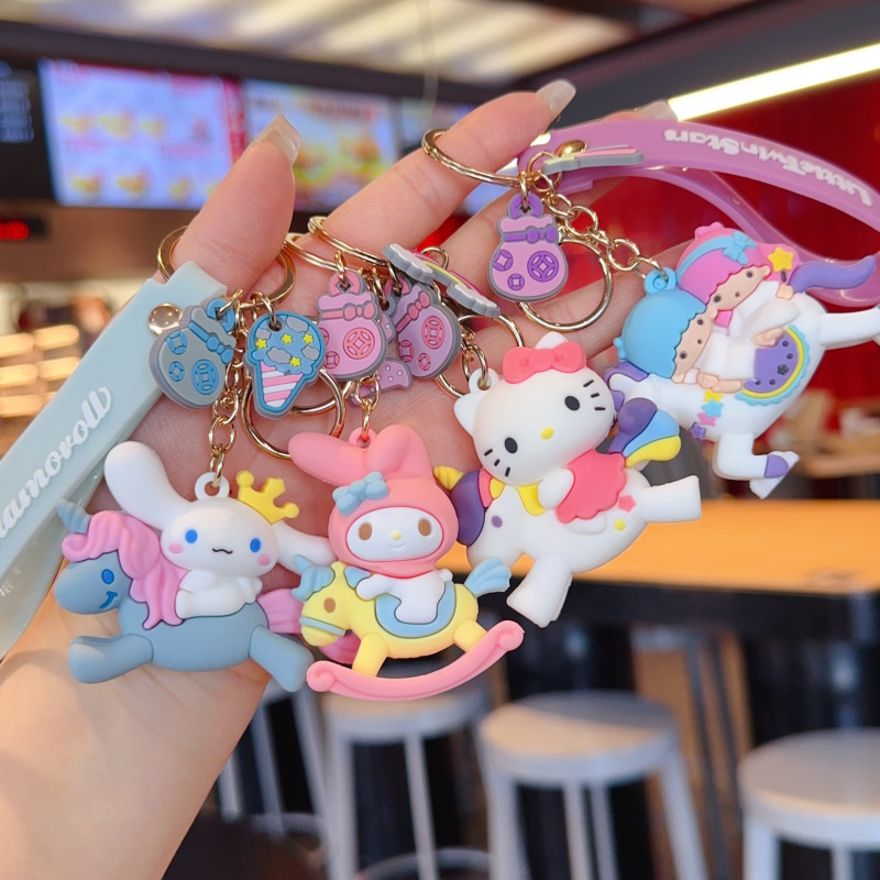 새로운 산리오 유니콘 키 체인 여성 귀여운 만화 큰 귀 개 인형 머로 커플 펜던트 도매스토어 가기