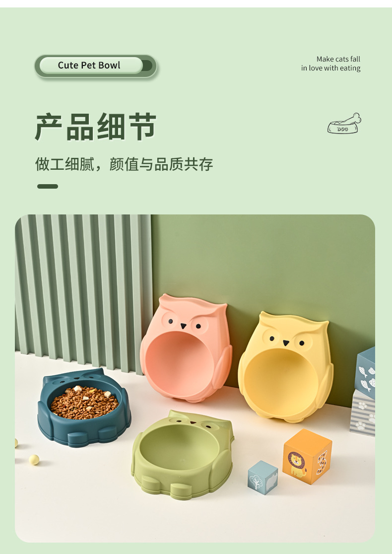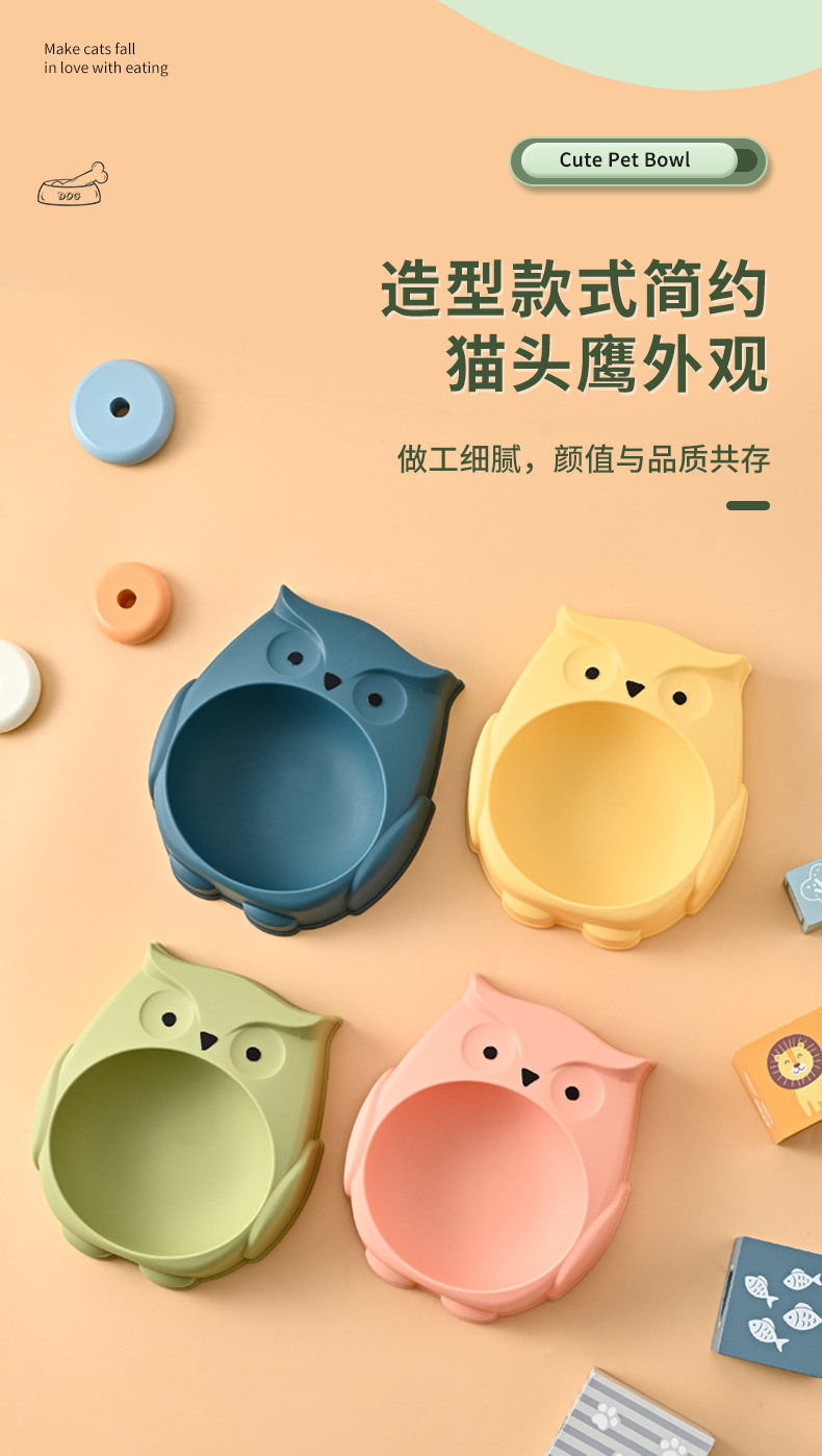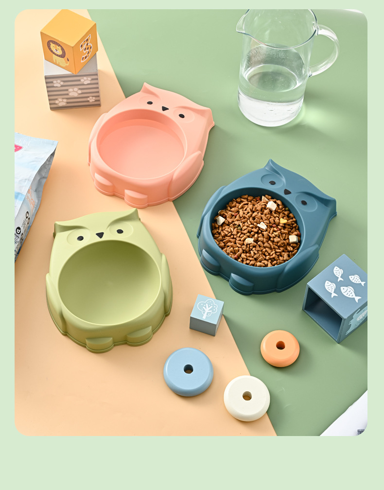 애완 동물 그릇 도매 올빼미 만화 요소 대용량 고양이 그릇 미끄럼 방지 및 흔들림 방지 개 식기 애완 동물 용품스토어 가기