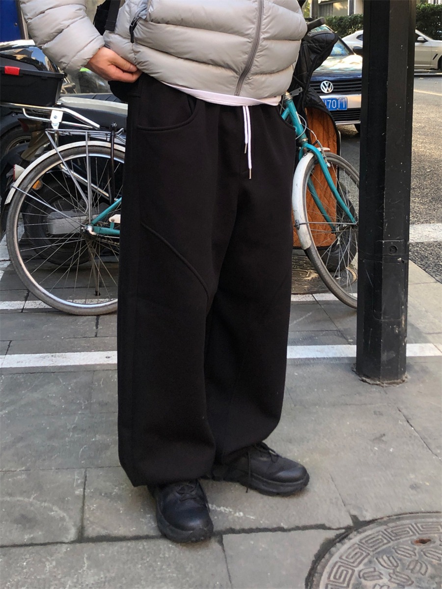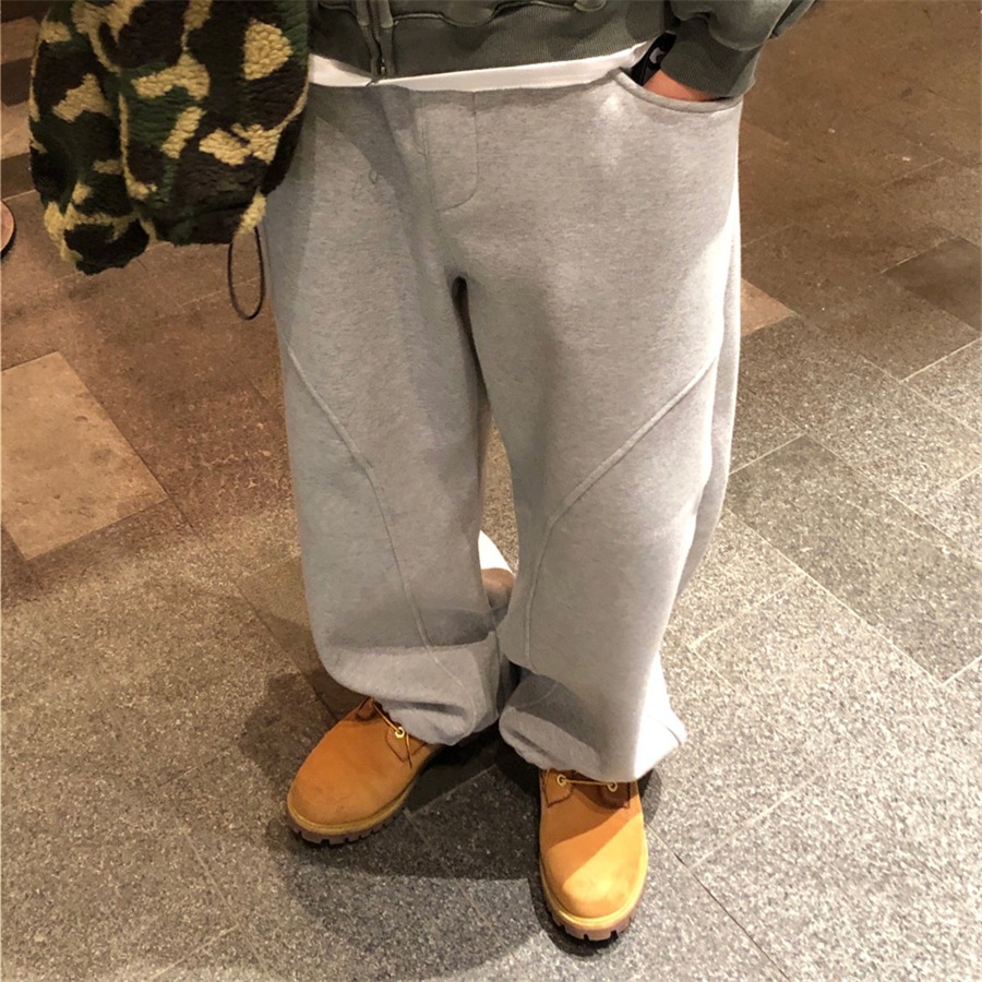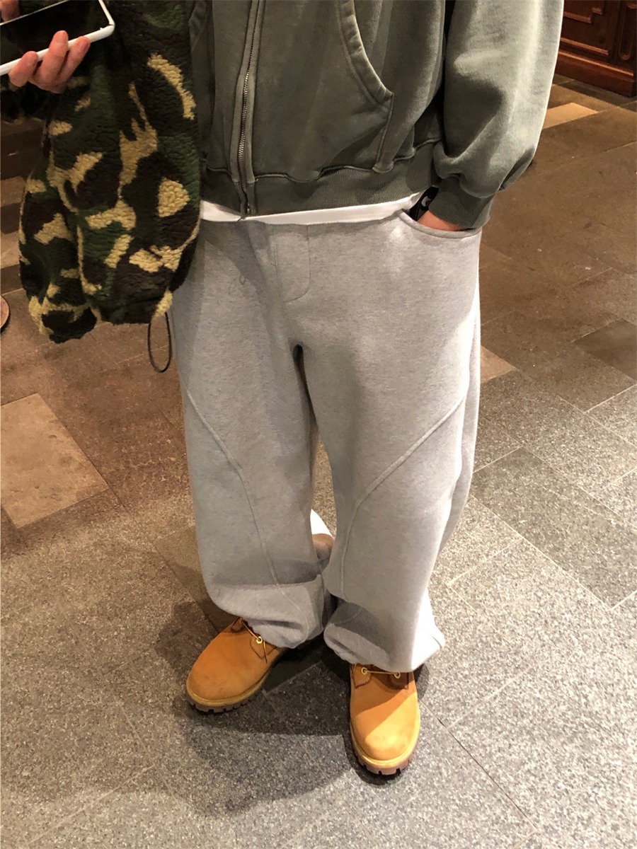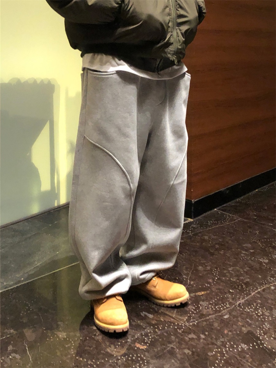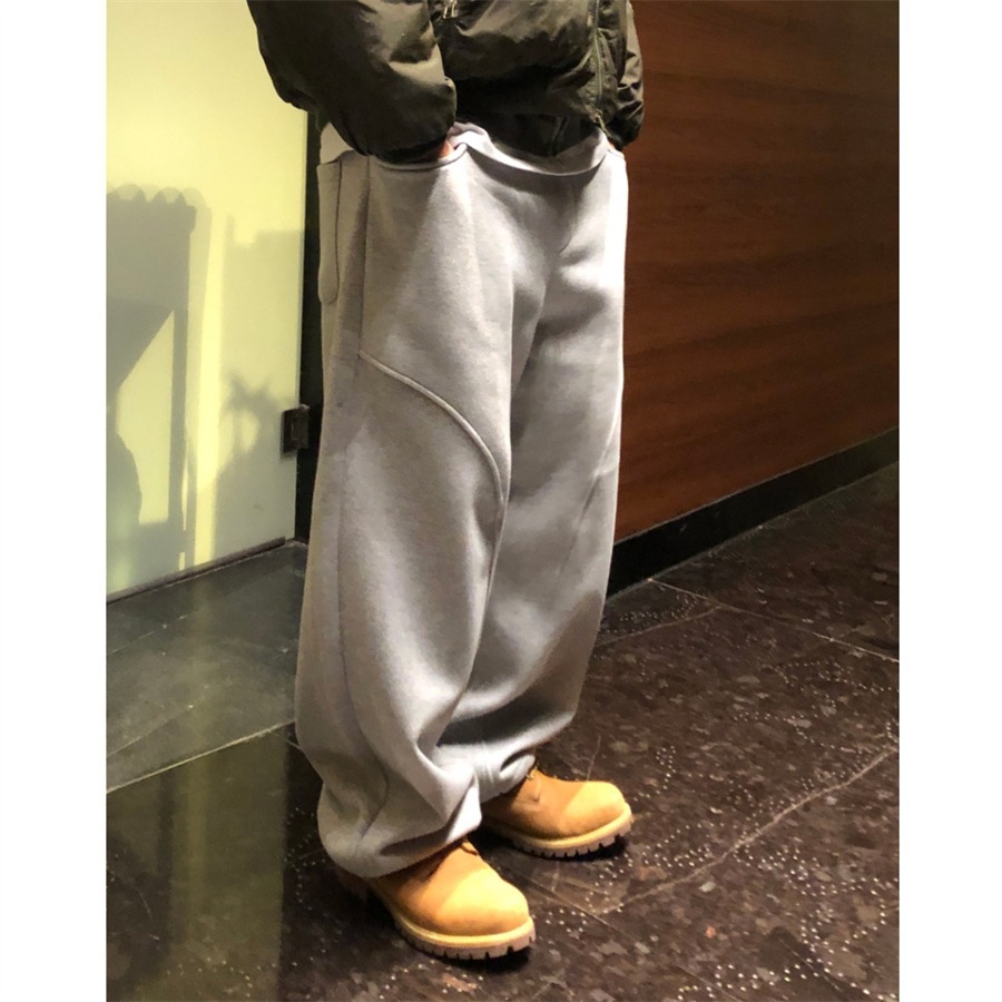 미국 무거운 아크 분할 디자인 넓은 다리 캐주얼 바지 남자 봄 새로운 하이 스트리트 느슨한 올 매치 바지스토어 가기