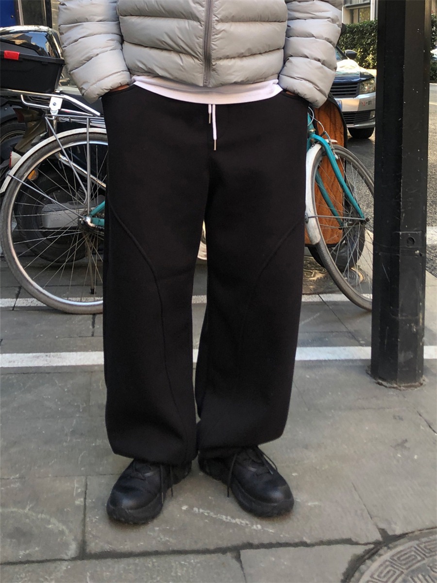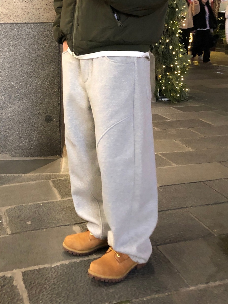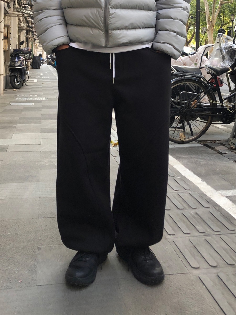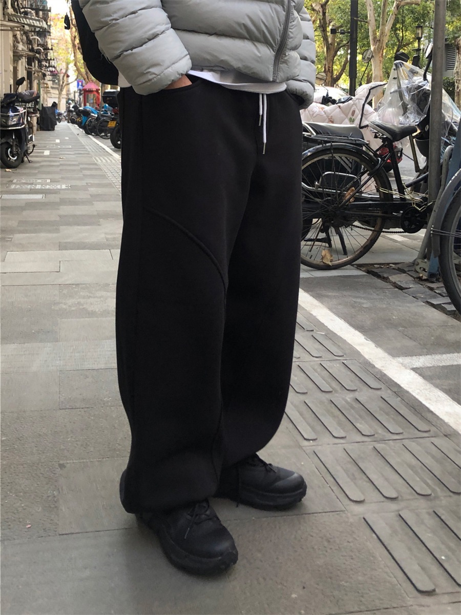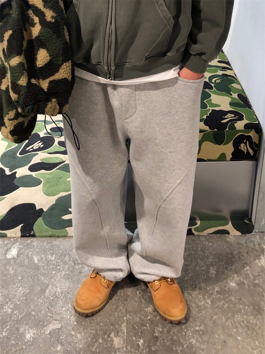 미국 무거운 아크 분할 디자인 넓은 다리 캐주얼 바지 남자 봄 새로운 하이 스트리트 느슨한 올 매치 바지스토어 가기