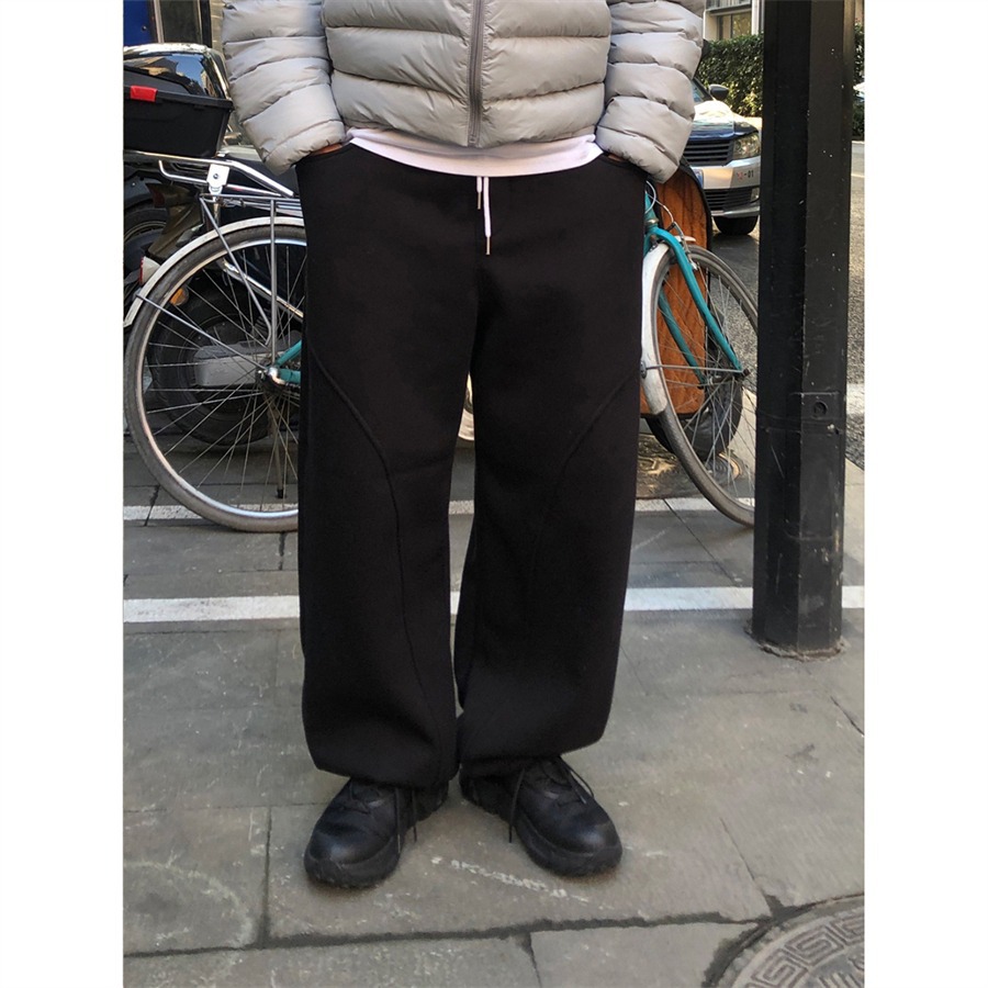 미국 무거운 아크 분할 디자인 넓은 다리 캐주얼 바지 남자 봄 새로운 하이 스트리트 느슨한 올 매치 바지