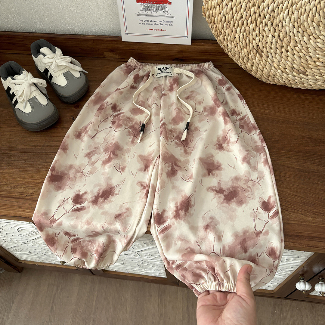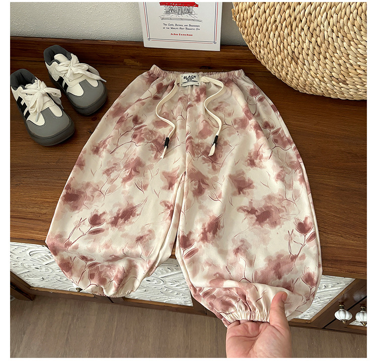 어린이 랜턴 바지 민족 스타일 여름 얇은 바지 큰 아이들을위한 남자와 여자의 안티 모기 바지 중국 스타일 개인화 된 꽃 머리스토어 가기