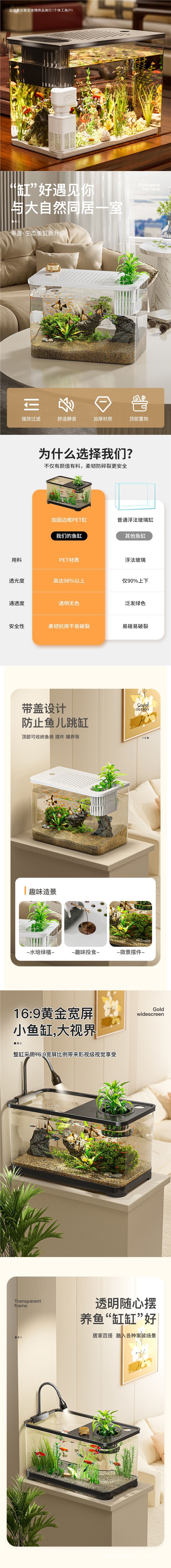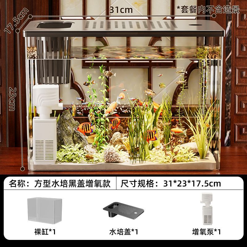 뚜껑이 있는 물고기 탱크 수족관 플라스틱 생태 탱크 금붕어 탱크 홈 거실 투명 작은 차 테이블 데스크탑 조경 탱크스토어 가기