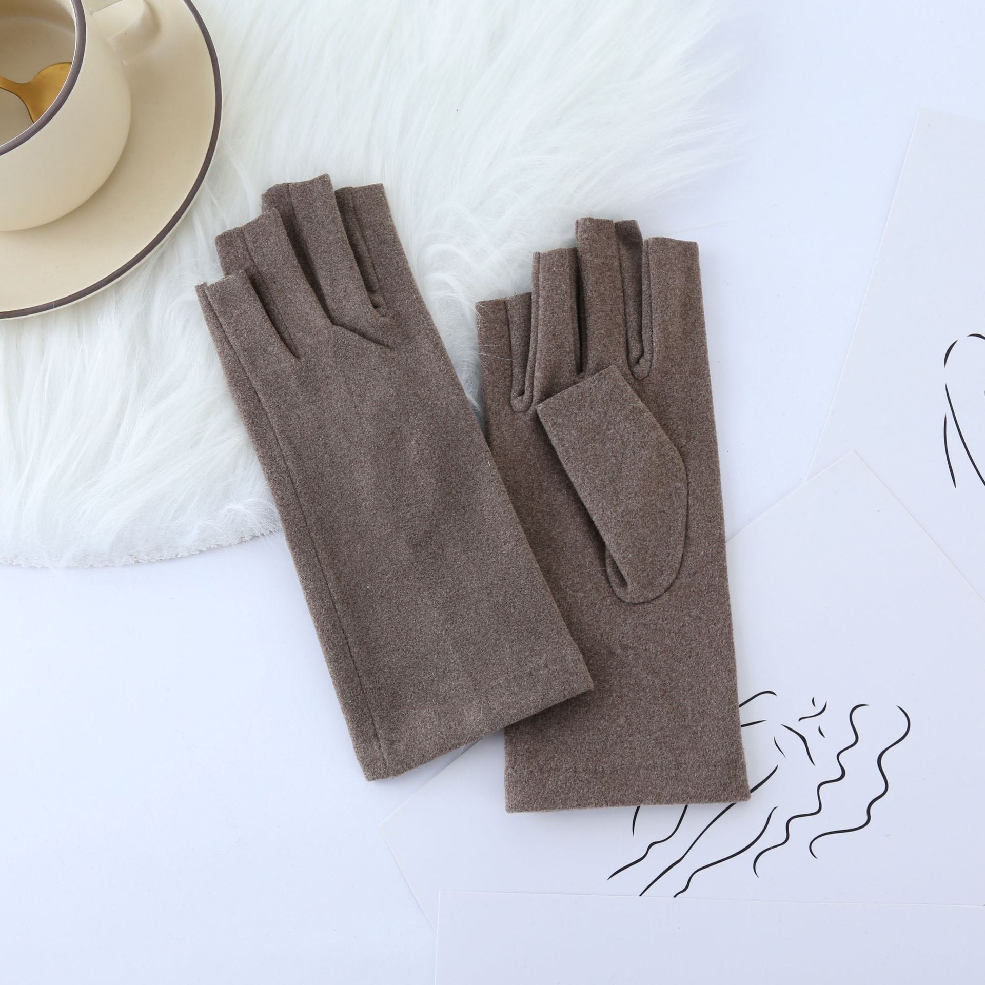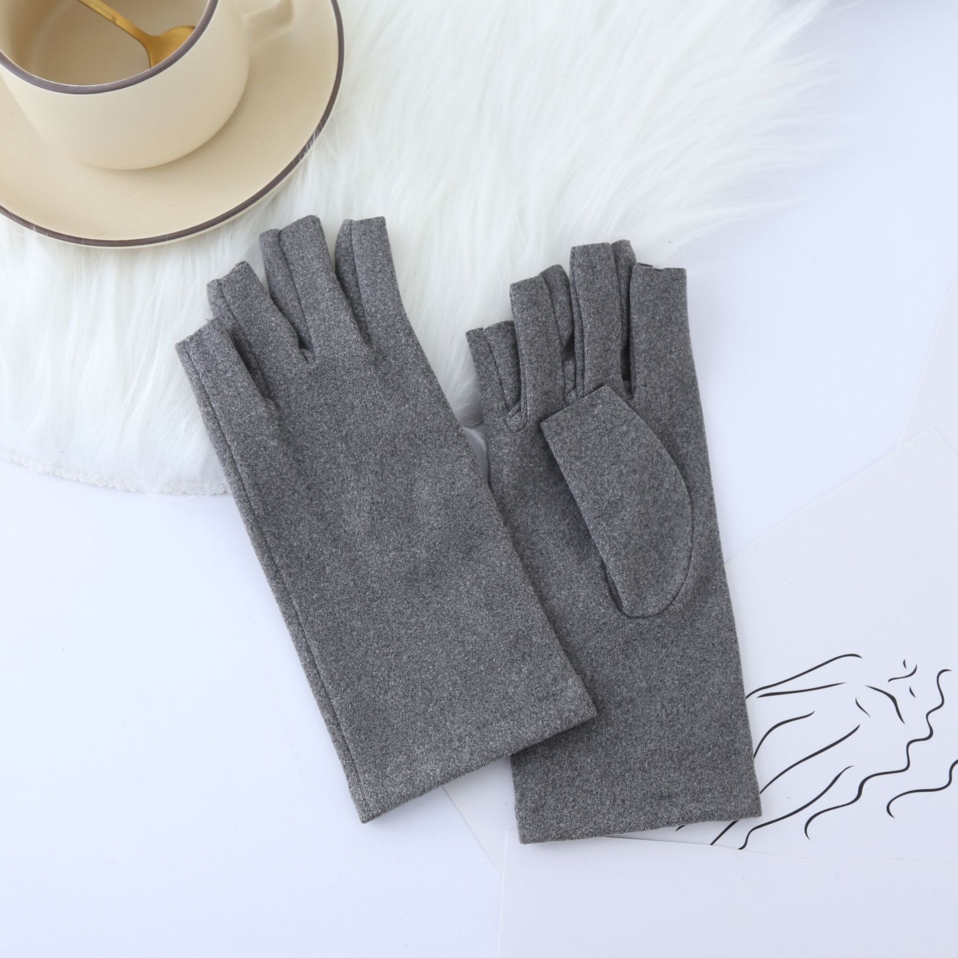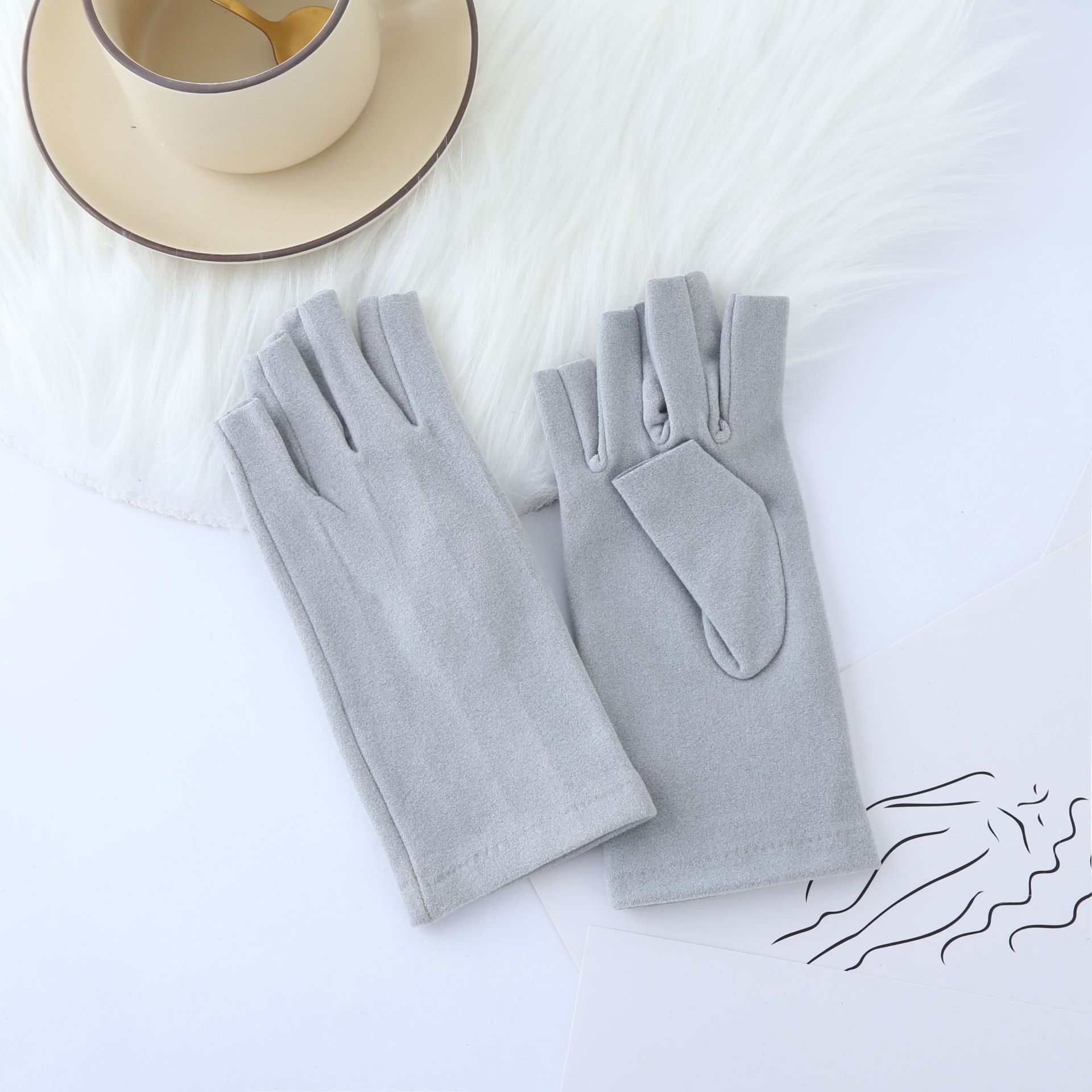 가을 겨울 따뜻한 장갑 반손가락 방한 터치스크린 네일아트 데론 장갑 사무실 타이핑 학생 숙제용스토어 가기