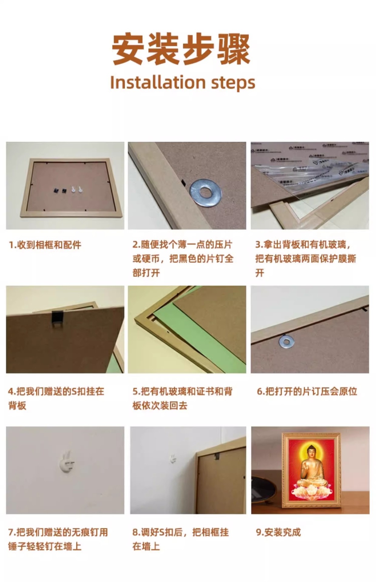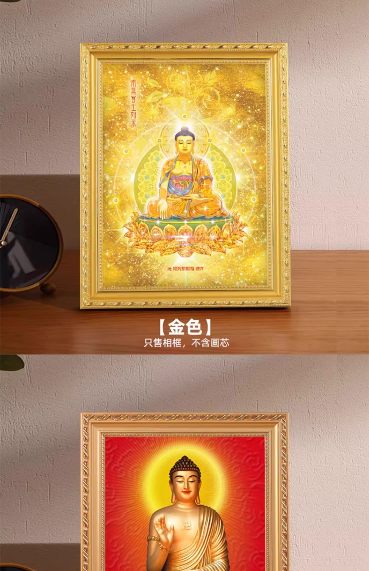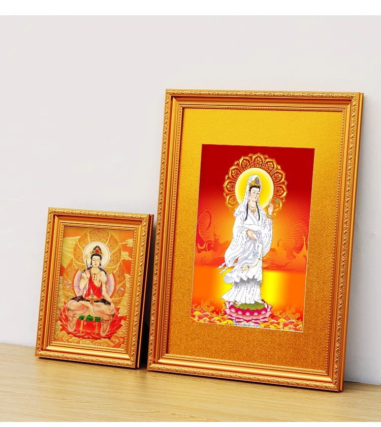 황금 불상 사진 프레임, 관음보살, 난무아미타불, 원목 액자, 관동제비, 고급 기념품