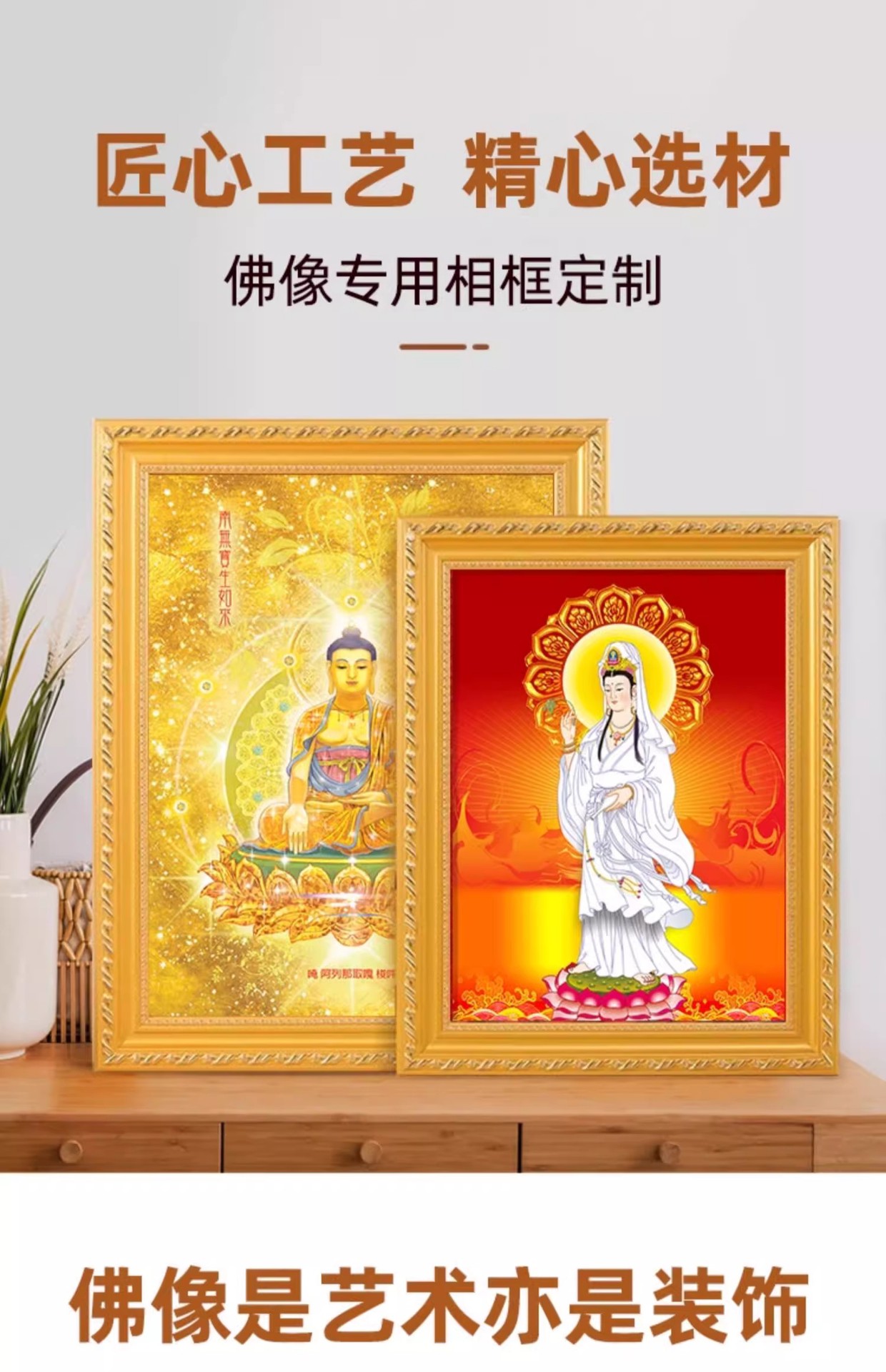 황금 불상 사진 프레임, 관음보살, 난무아미타불, 원목 액자, 관동제비, 고급 기념품스토어 가기