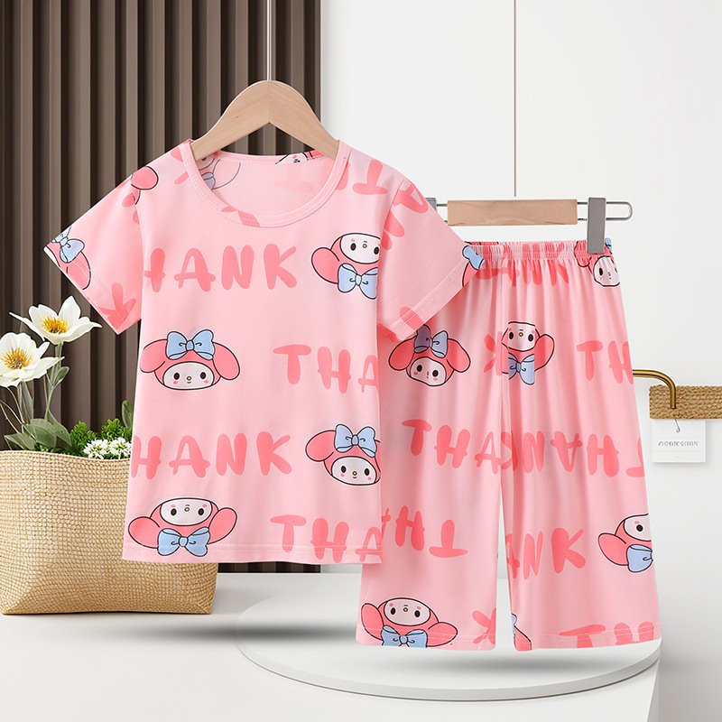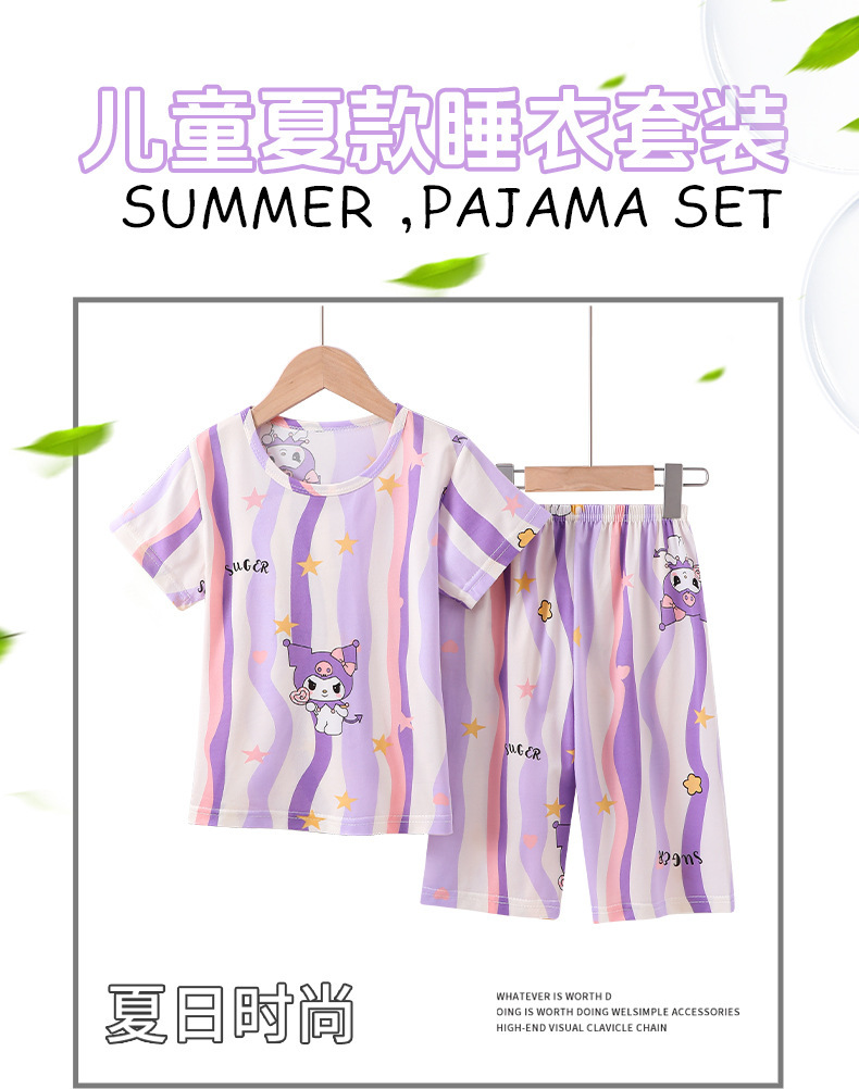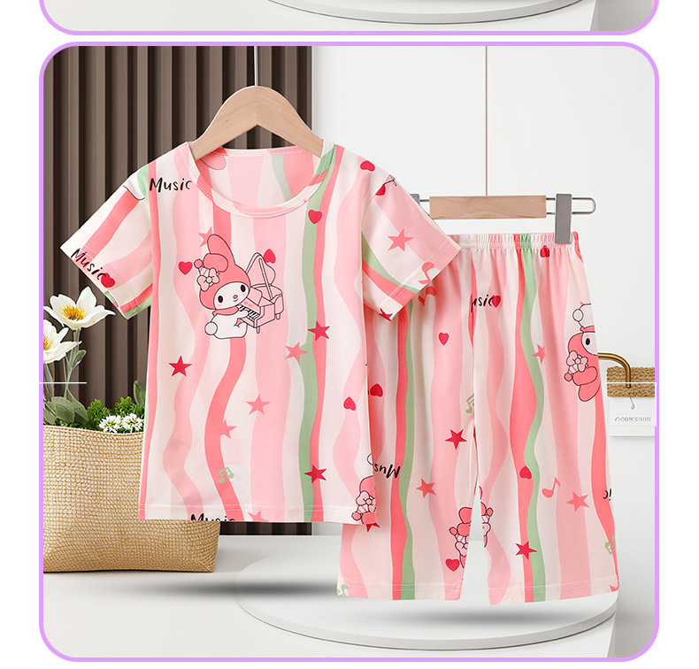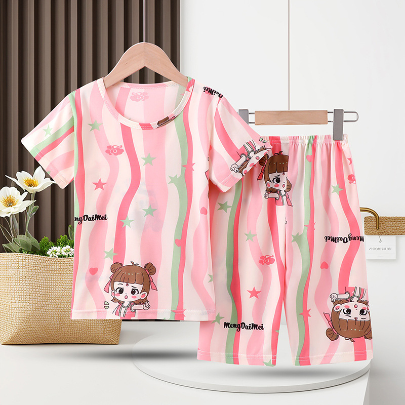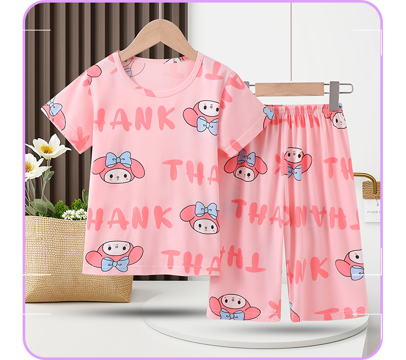여자 루비 잠옷 여름 새로운 봄 반팔 얇은 소형, 중형 및 대형 아동복 여자 만화 귀여운 가정 옷스토어 가기
