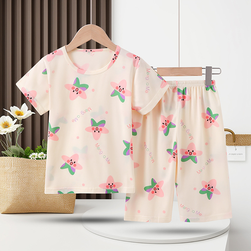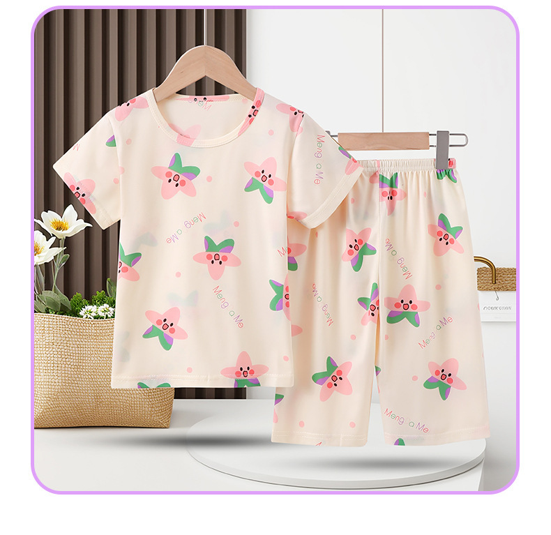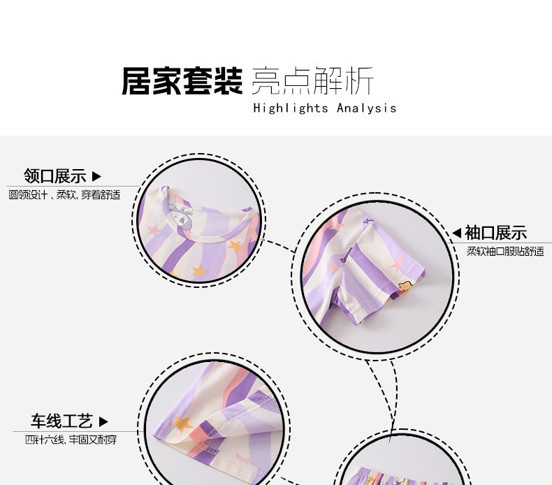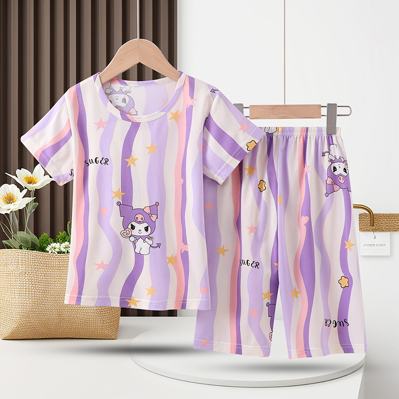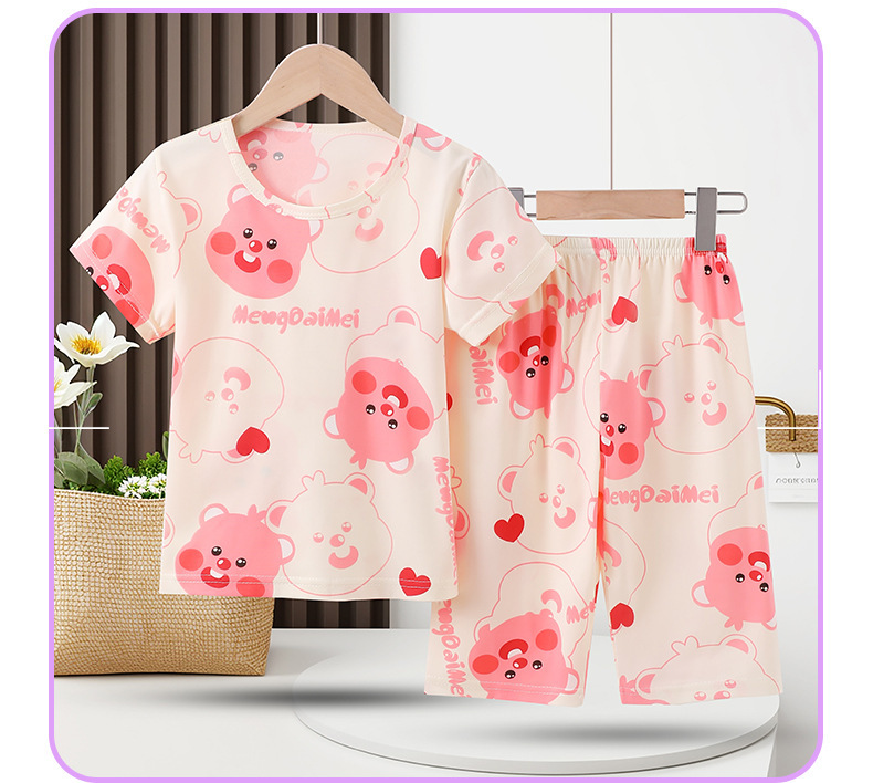 여자 루비 잠옷 여름 새로운 봄 반팔 얇은 소형, 중형 및 대형 아동복 여자 만화 귀여운 가정 옷스토어 가기