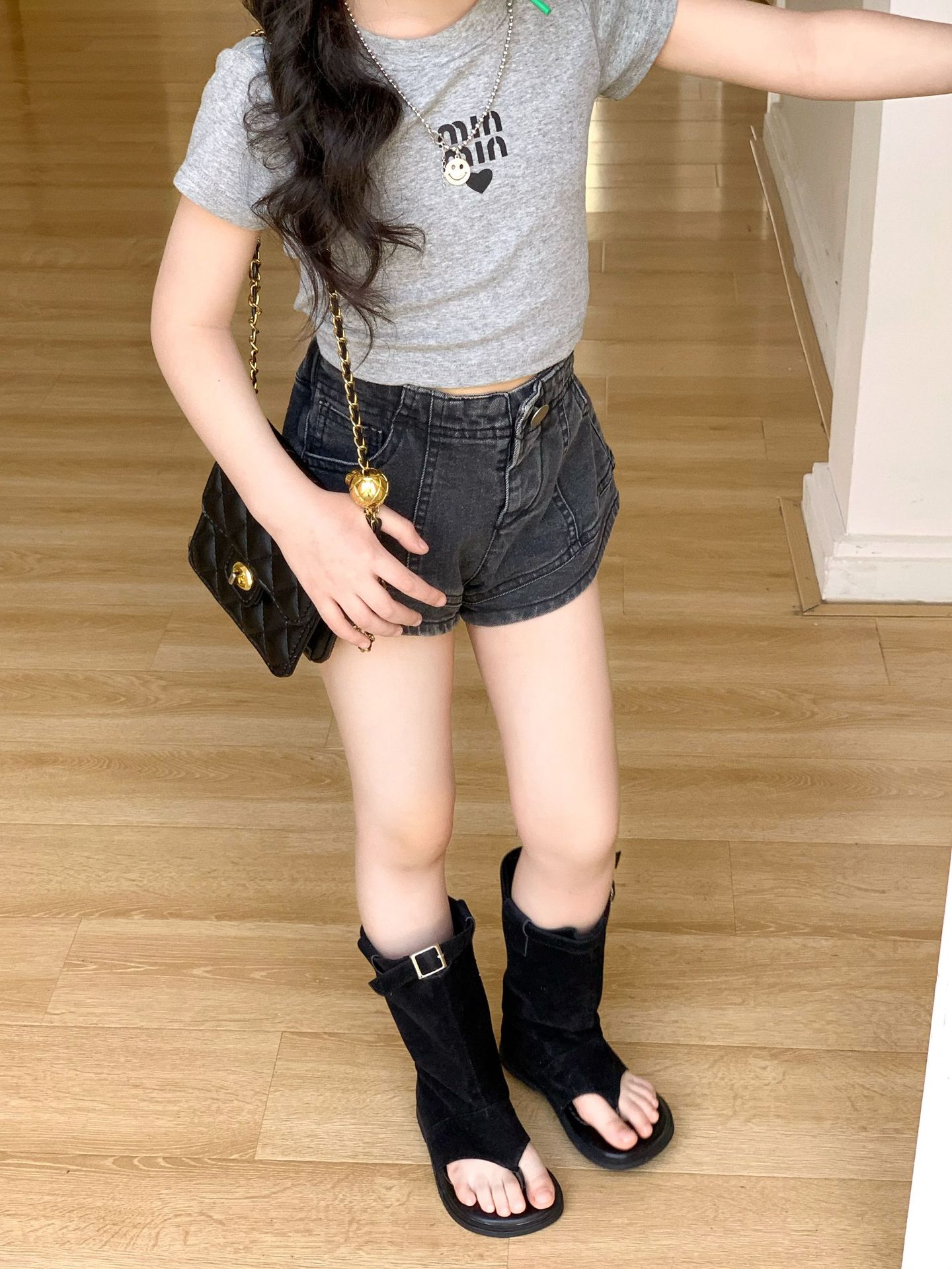 소녀 반바지 2025 여름 한국 스타일 데님 반바지 미국식 핫 바지 스트레치 레트로 바지스토어 가기