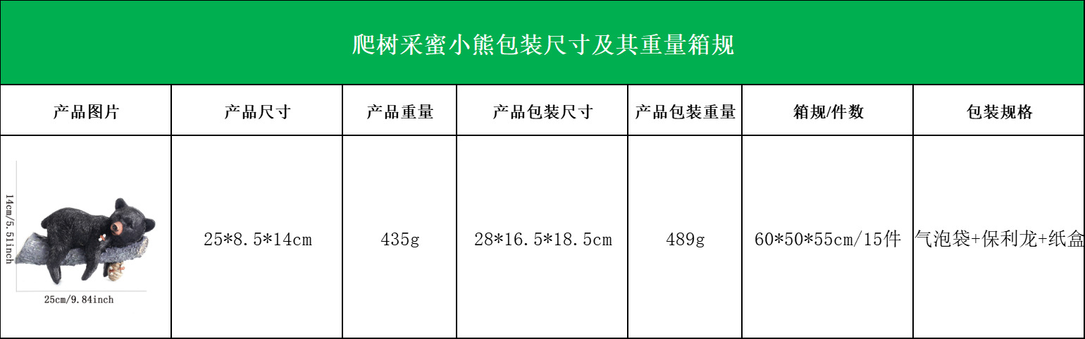 국경을 넘는 새로운 나무 껍질 곰 동물 장식품 창조적 인 야외 검은 곰 나무 등반 및 꿀 정원 장식 수지 공예 훔치기