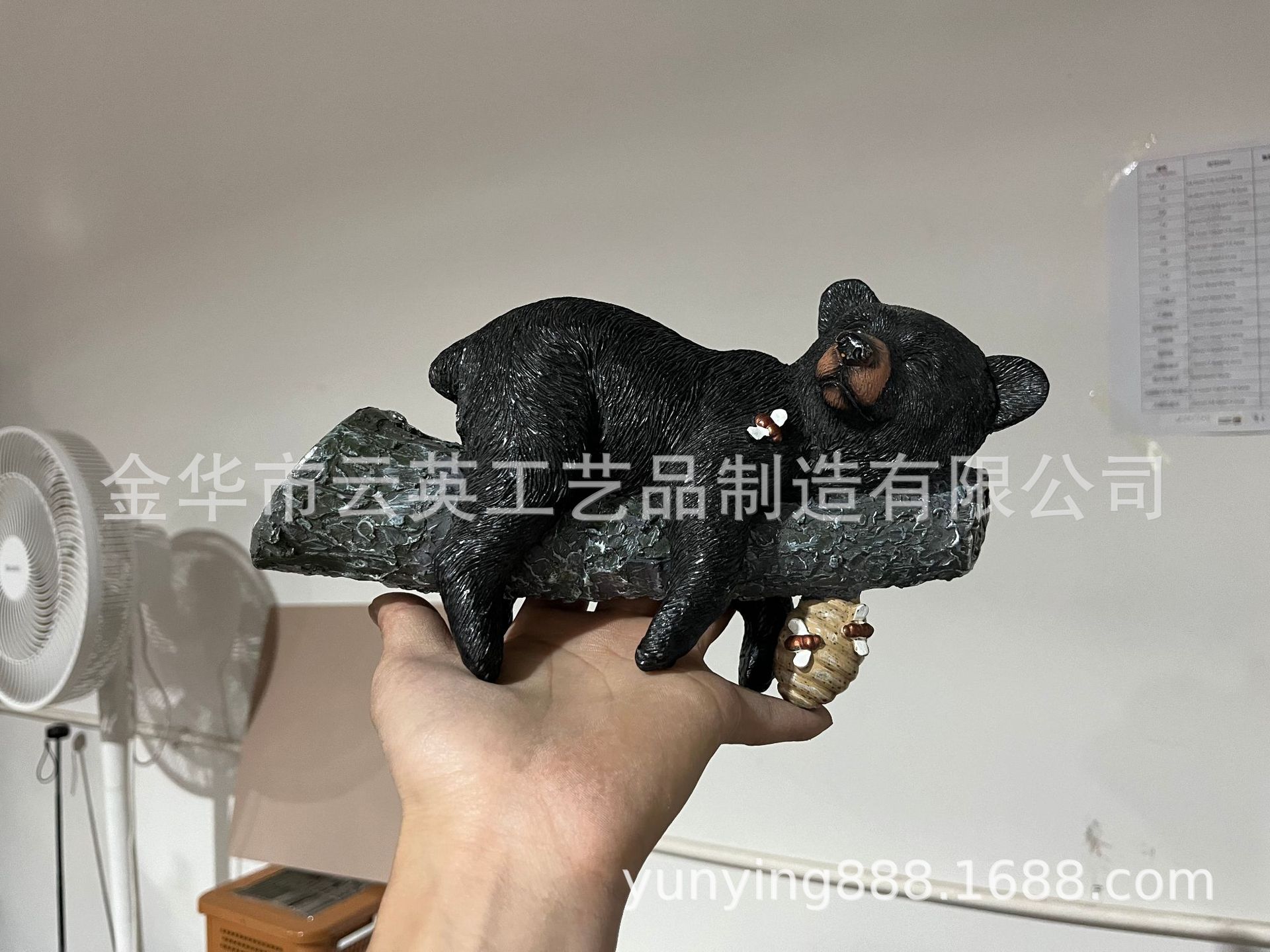 국경을 넘는 새로운 나무 껍질 곰 동물 장식품 창조적 인 야외 검은 곰 나무 등반 및 꿀 정원 장식 수지 공예 훔치기스토어 가기