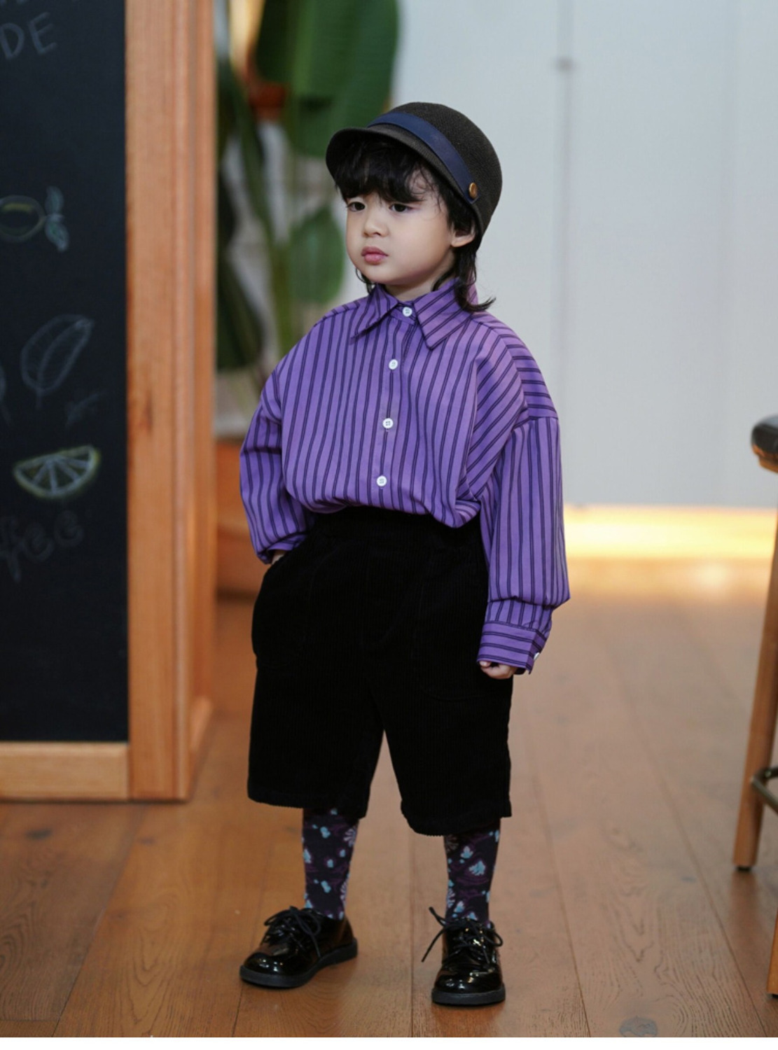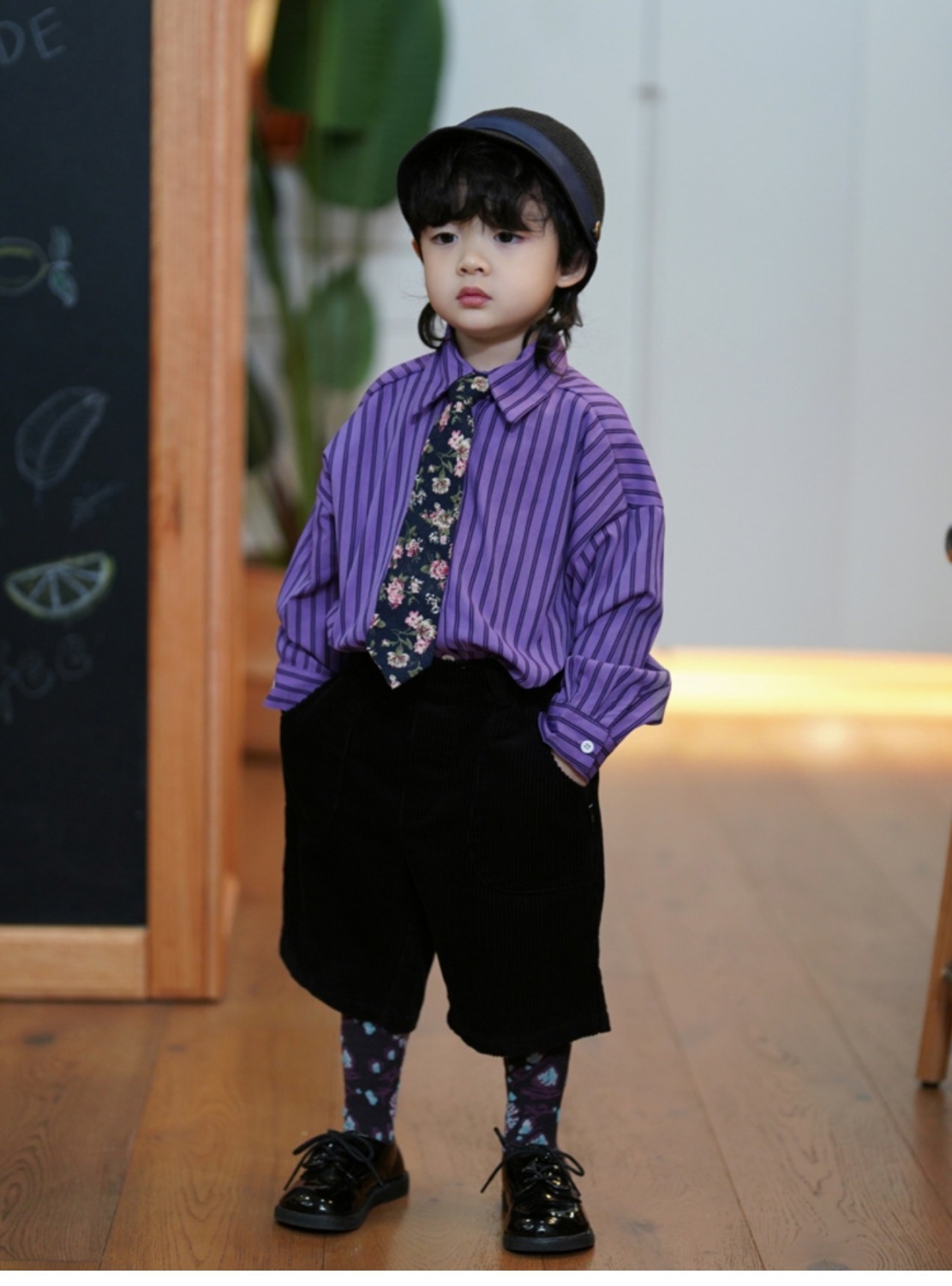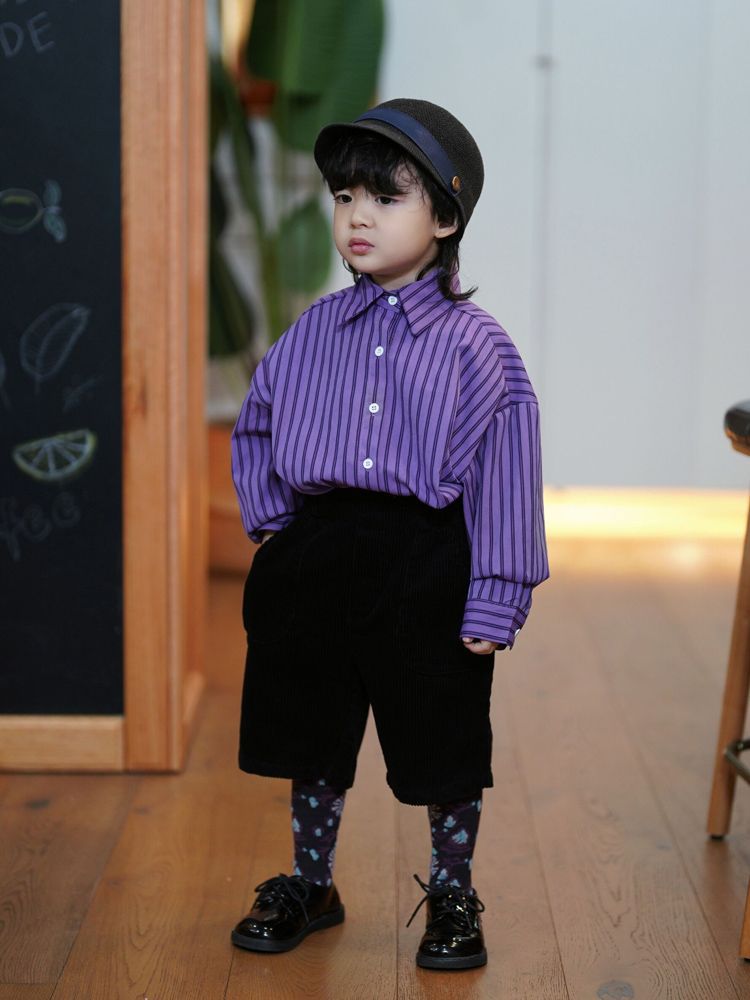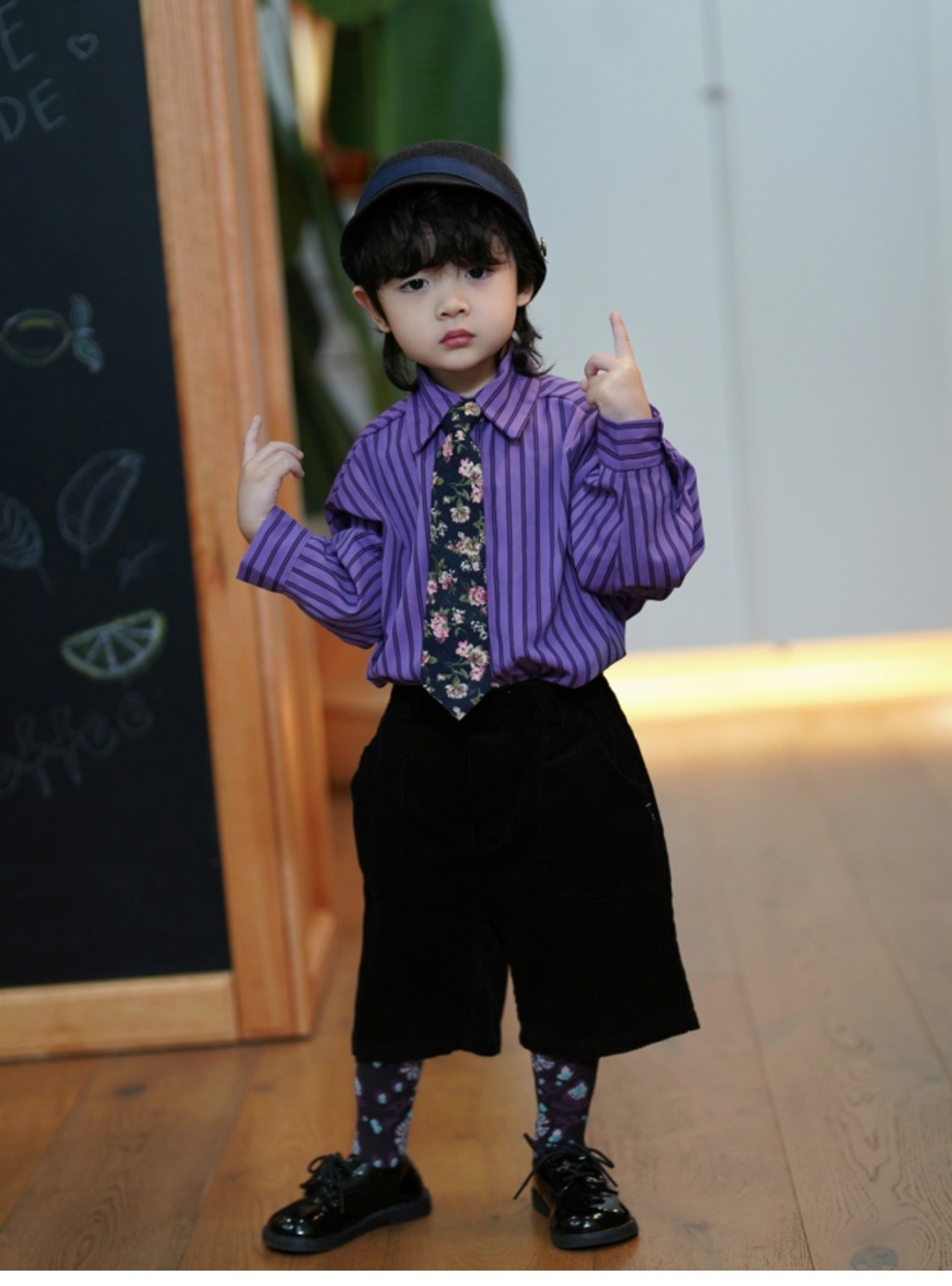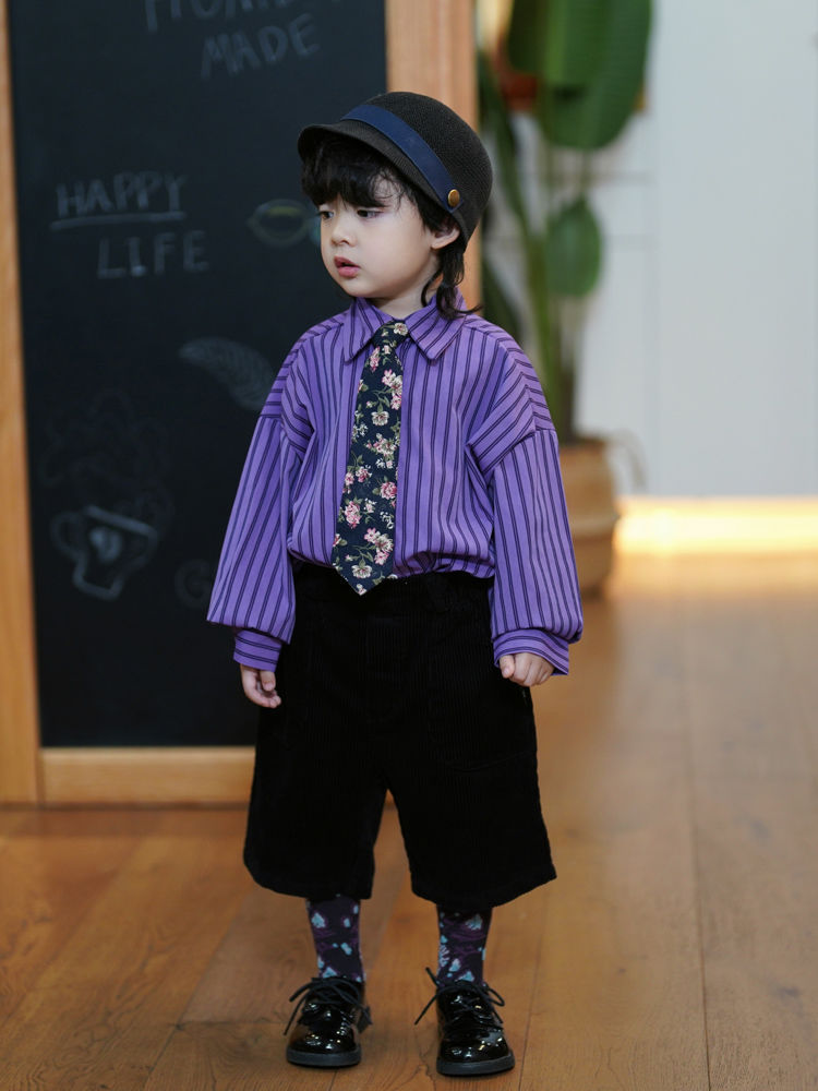 소년 가을 정장 2023 새로운 아기 소년 보라색 긴팔 셔츠 다목적 코듀로이 7 팬츠 투피스 세트스토어 가기