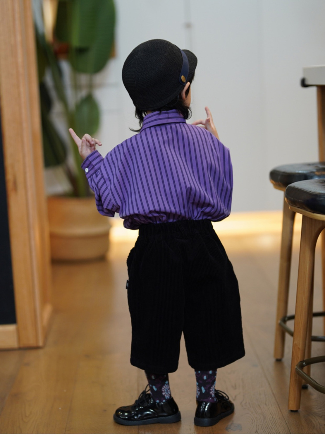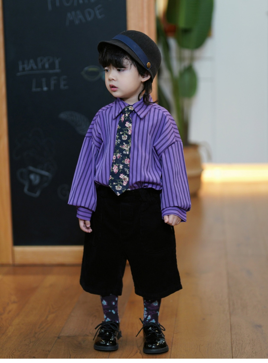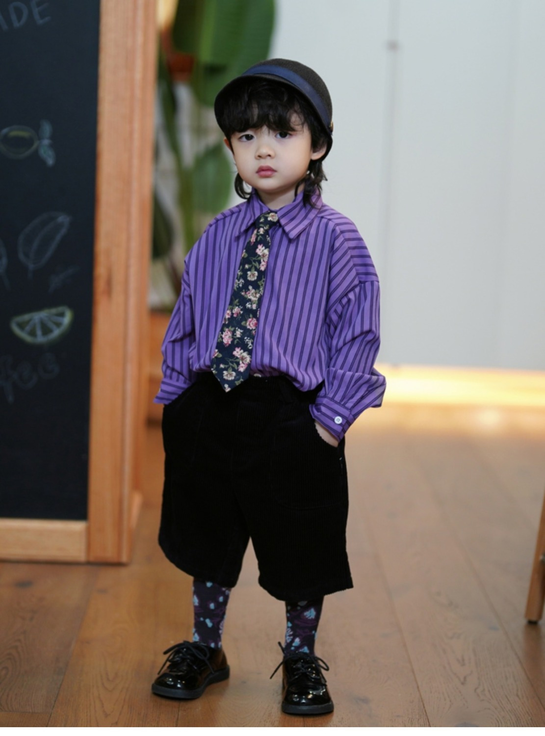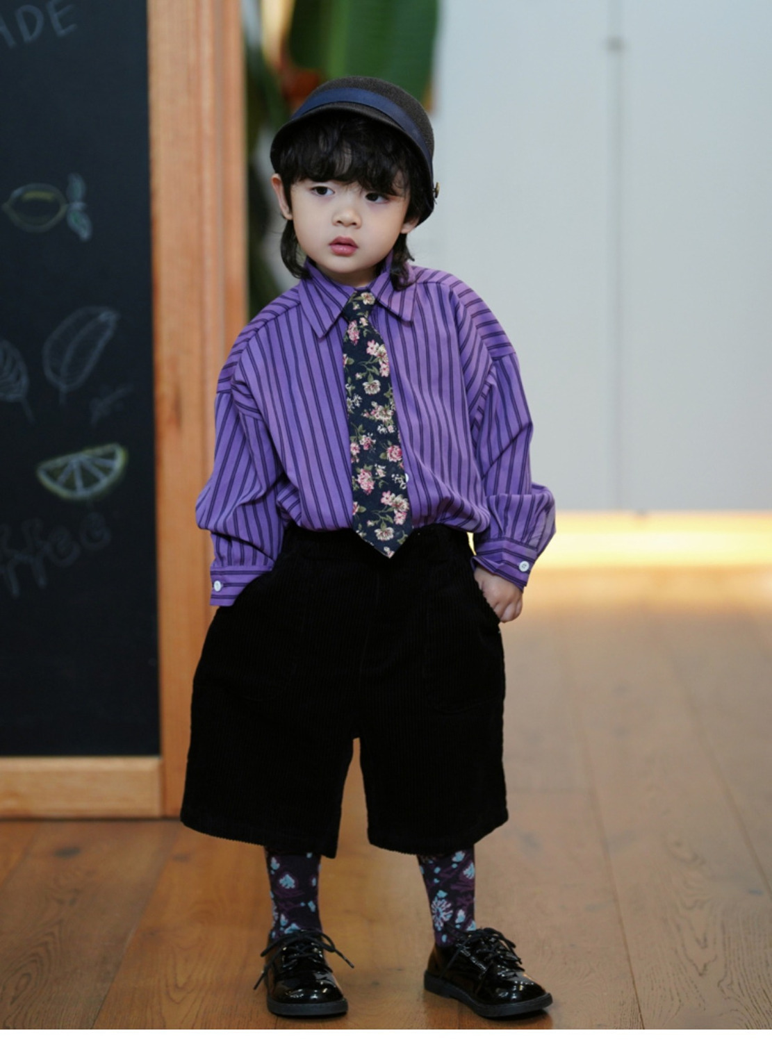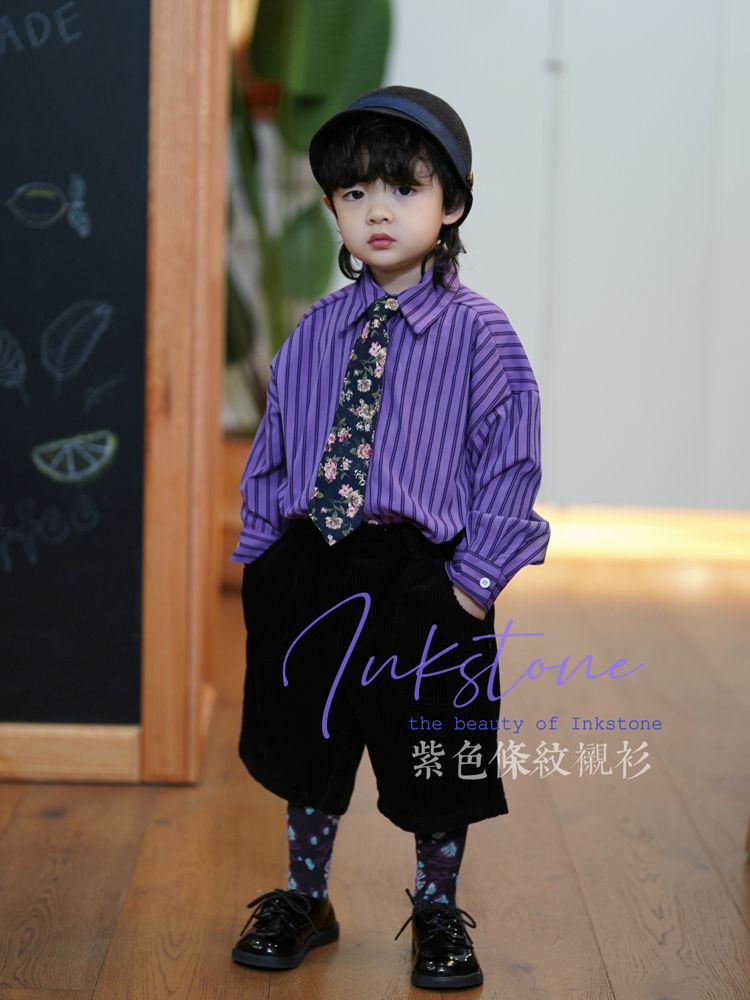 소년 가을 정장 2023 새로운 아기 소년 보라색 긴팔 셔츠 다목적 코듀로이 7 팬츠 투피스 세트스토어 가기