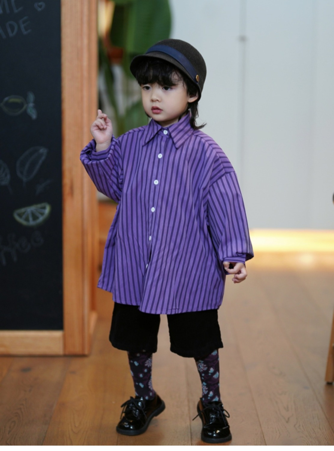 • 보라색 스트라이프 셔츠+7점팬츠 투피스세트, 프리타이