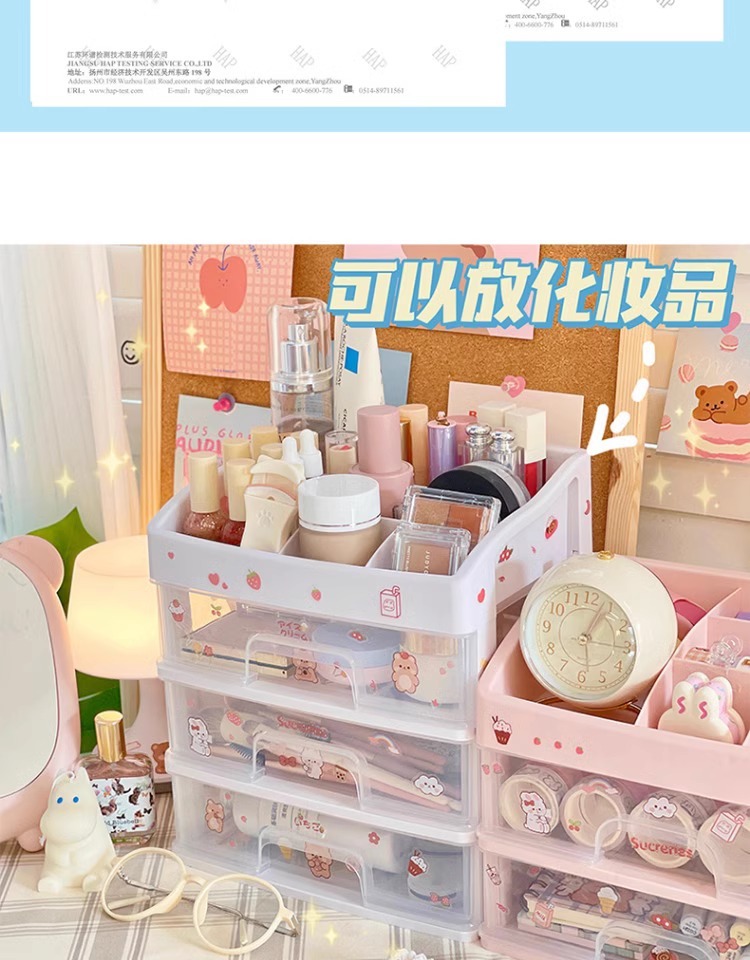간단한 스토리지 박스 투명 서랍 형 데스크탑 메이크업 박스 화장품 데스크 마감 박스 스토리지 랙 학생 테이블
