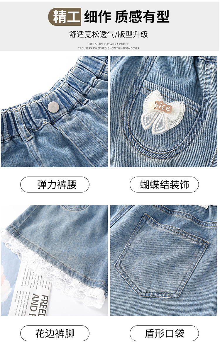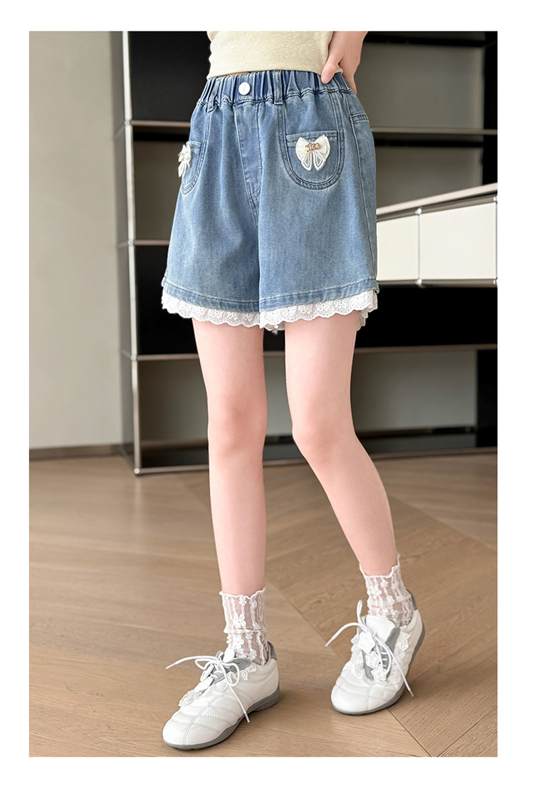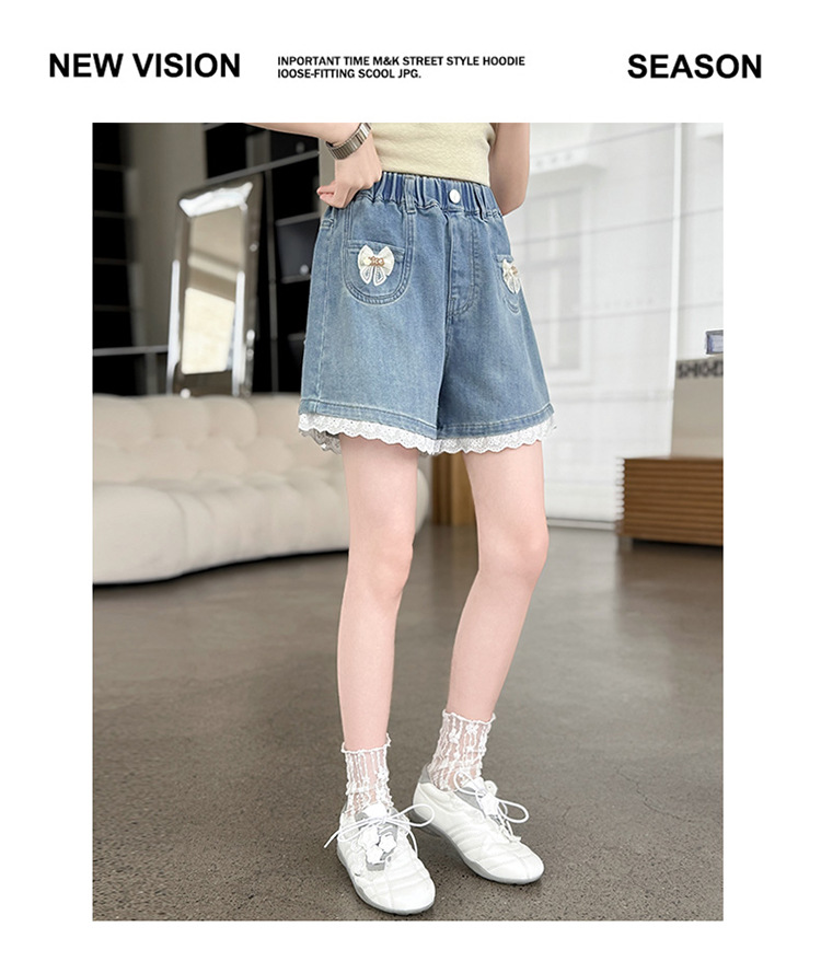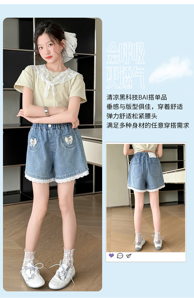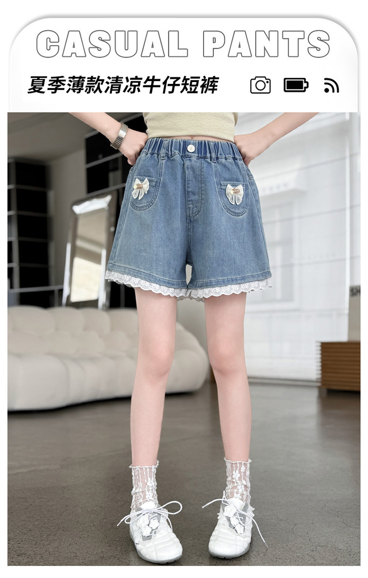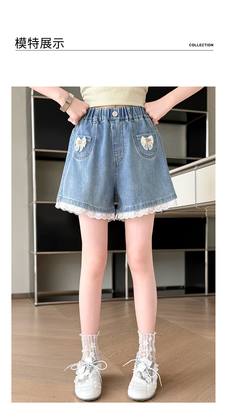 소녀 여름 데님 반바지 2025 새로운 어린이 얇은 캐주얼 바지 큰 어린이 한국 스타일 외풍 반바지스토어 가기