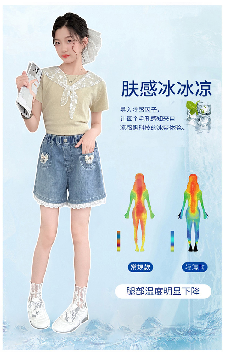 소녀 여름 데님 반바지 2025 새로운 어린이 얇은 캐주얼 바지 큰 어린이 한국 스타일 외풍 반바지