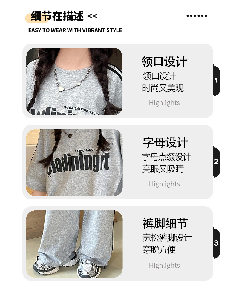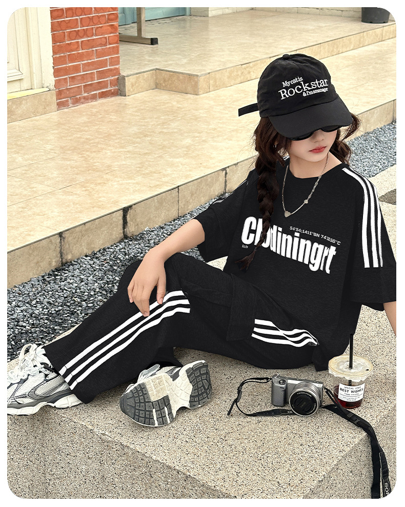 소녀의 빅 보이 편지 세트 2025 년 여름 새로운 스타일 서양식 반팔 캐주얼 바지 여름 빅 보이 스포츠 투피스 세트