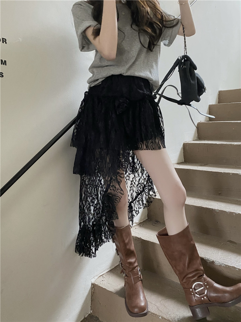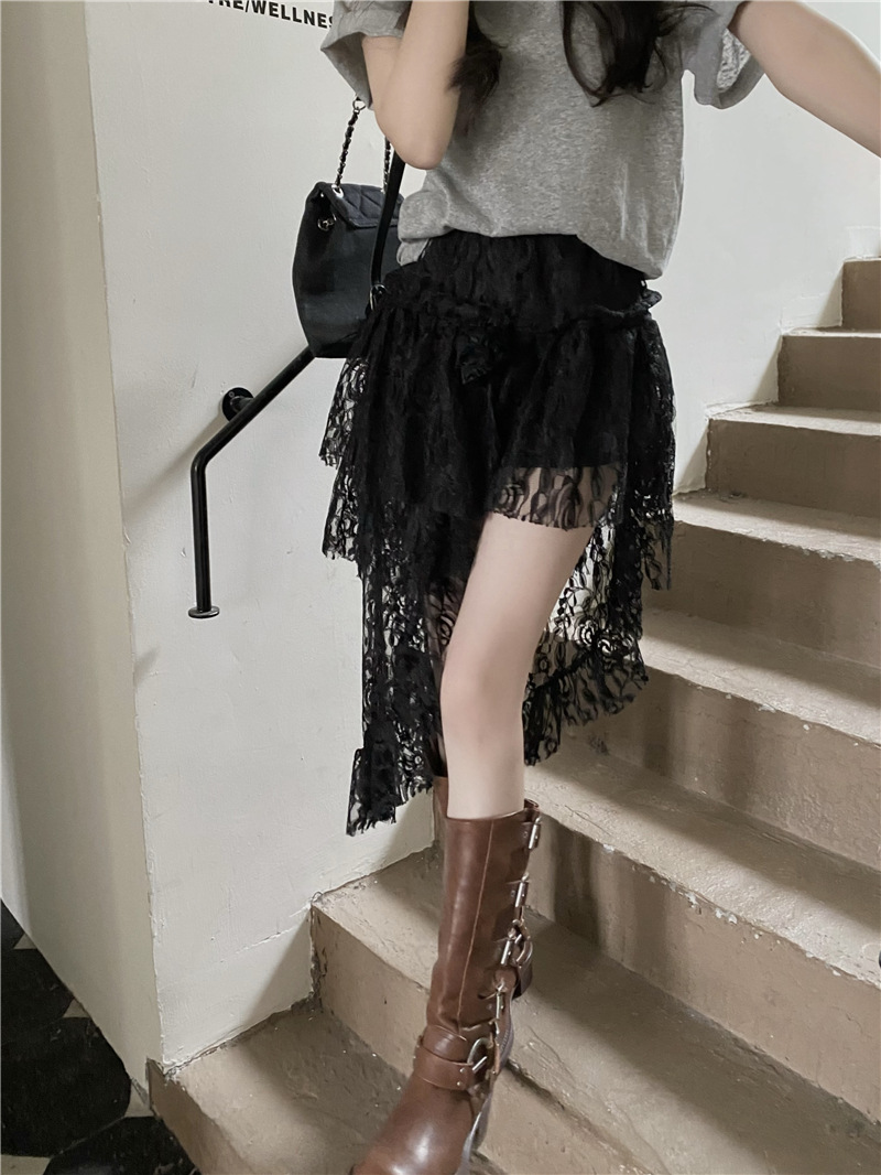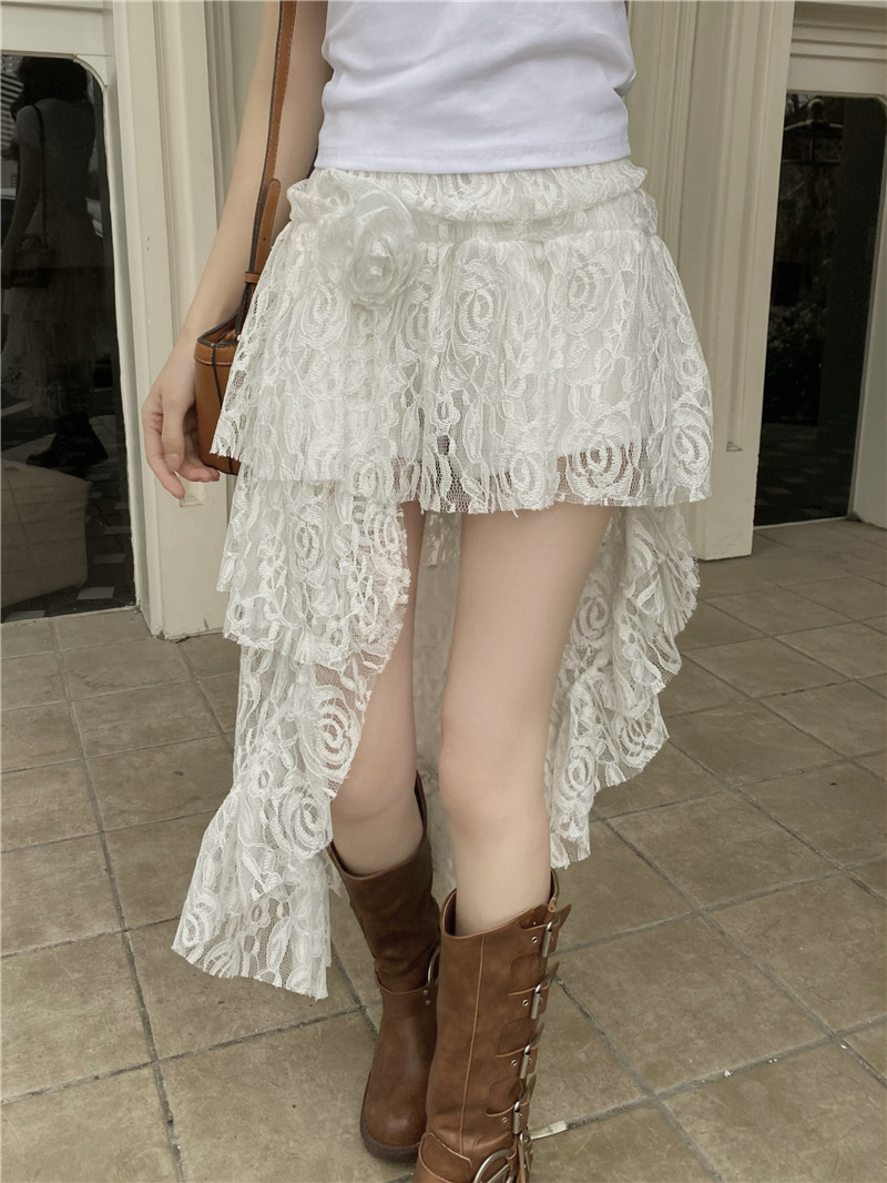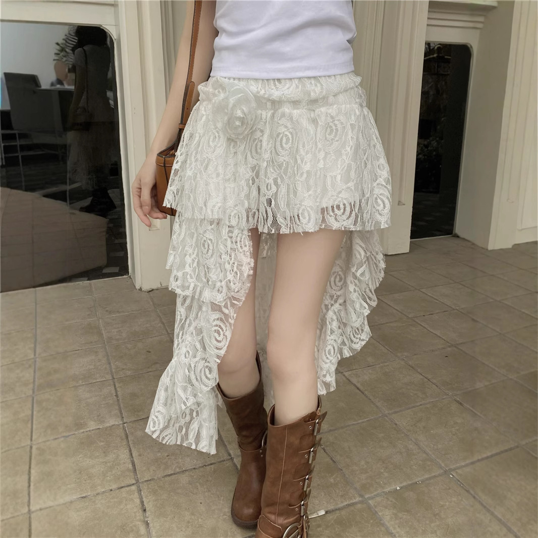 화이트 불규칙한 헴 레이스 스커트 여성의 여름 케이크 스커트 높은 허리 스커트 예술적 스커트 미디 스커트스토어 가기