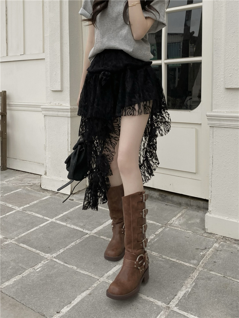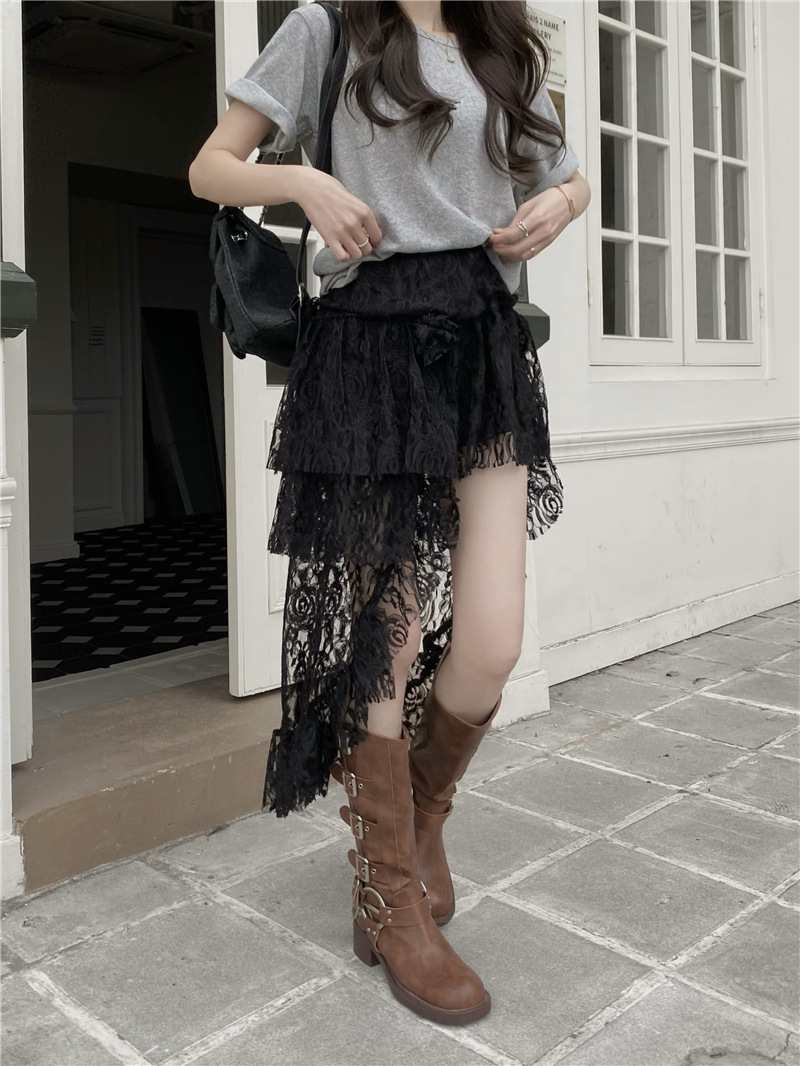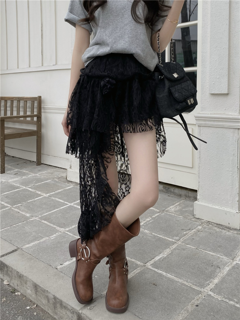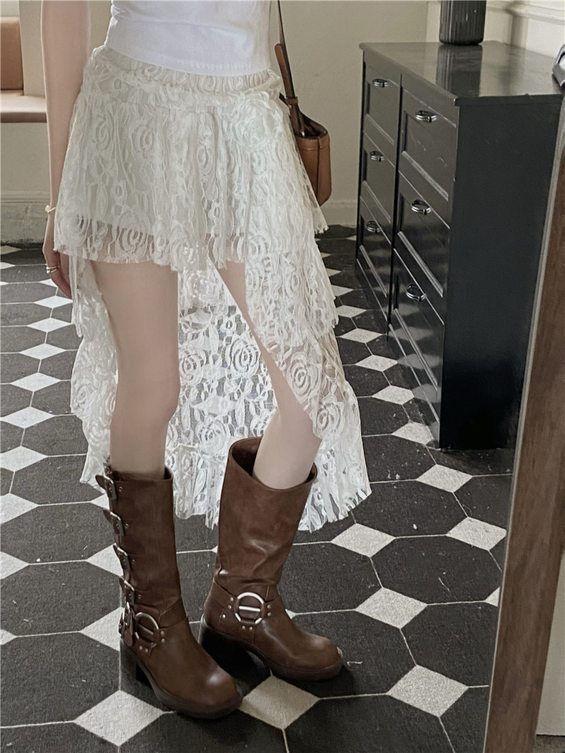 화이트 불규칙한 헴 레이스 스커트 여성의 여름 케이크 스커트 높은 허리 스커트 예술적 스커트 미디 스커트스토어 가기