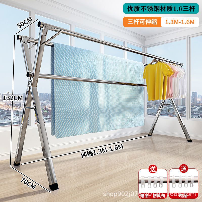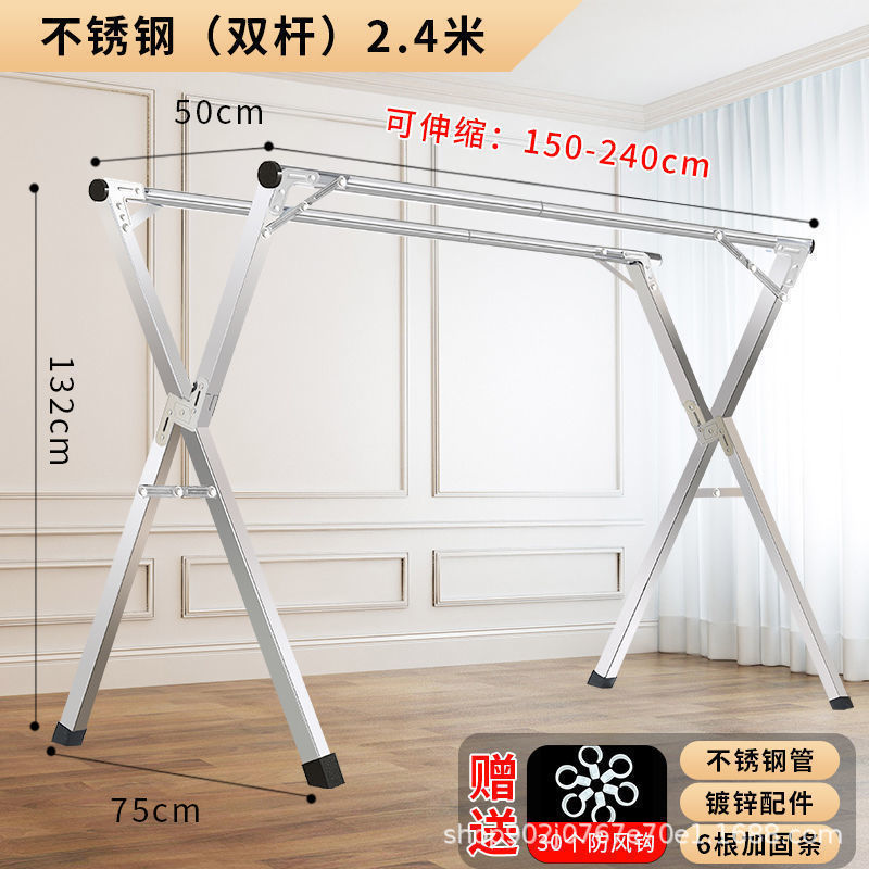스테인레스 스틸 빨래 건조대 바닥 접이식 실내 및 실외 빨래 건조대 이중 막대 발코니 옷 걸이 X 자형 간단한 빨래 건조대스토어 가기
