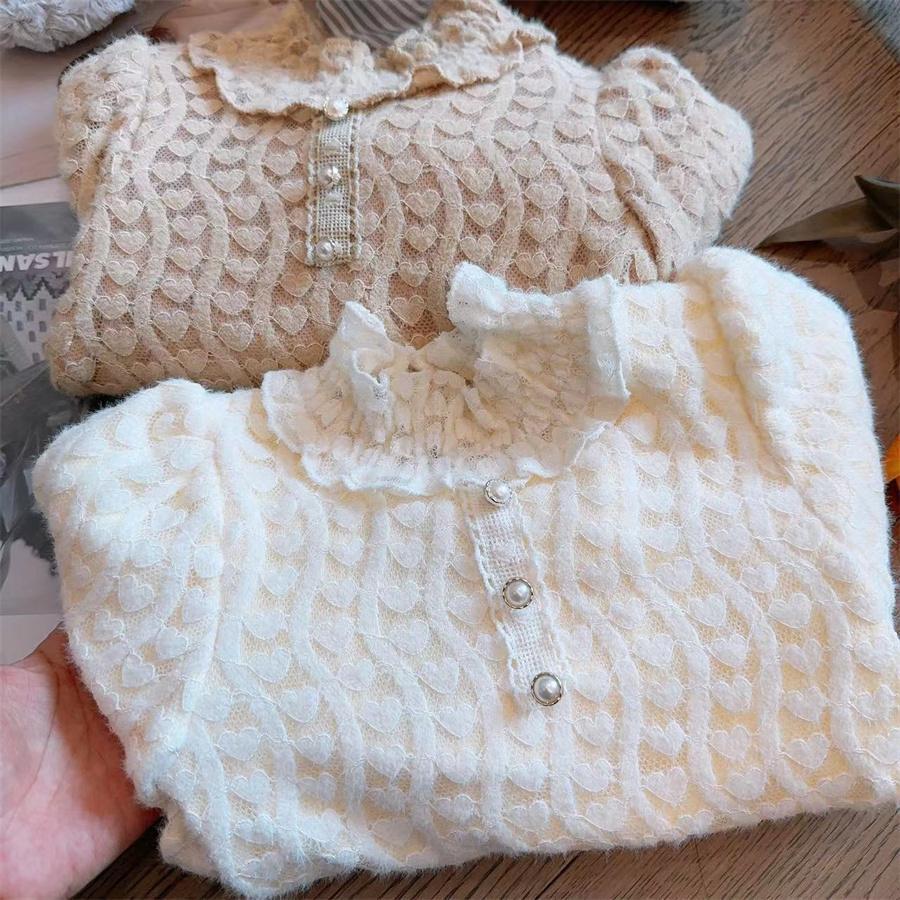 가을 겨울 신작 여아 벨벳 바닥 셔츠 아동복 한국식 베이비 스타일 긴팔 탑