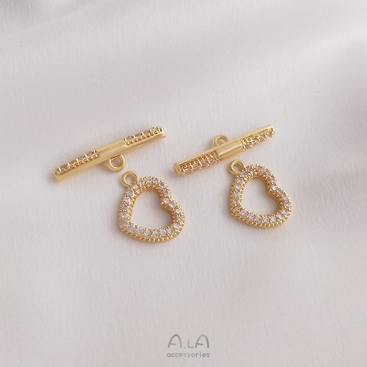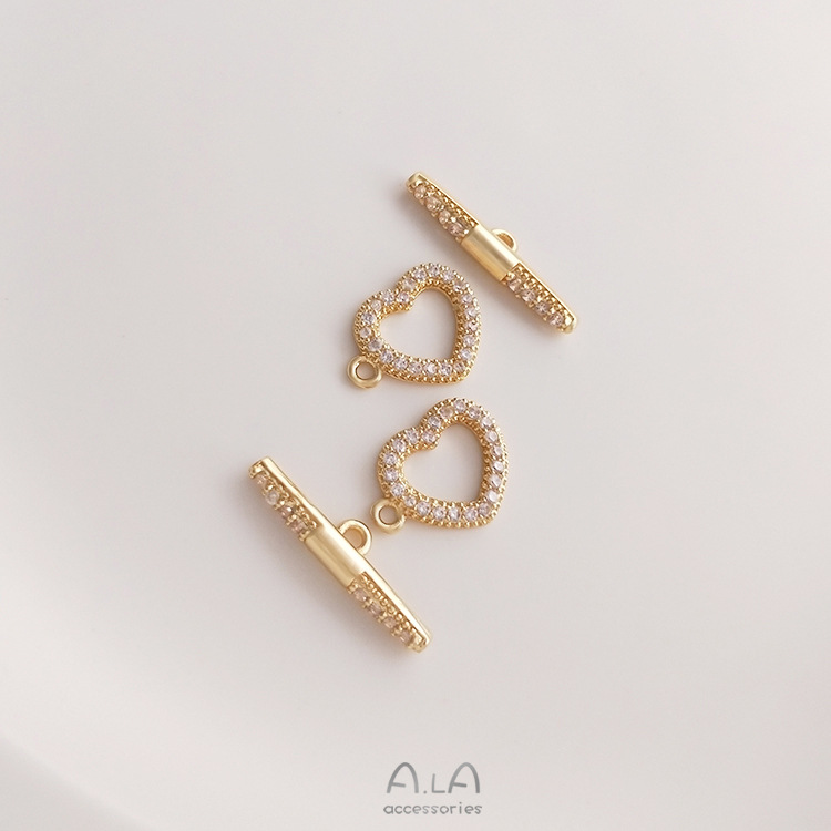 14K 금으로 채워진 색상 보존 마이크로 상감 지르콘 복숭아 하트 모양의 OT 버클 DIY 진주 체인 목걸이 팔찌 쥬얼리 러브 버클스토어 가기