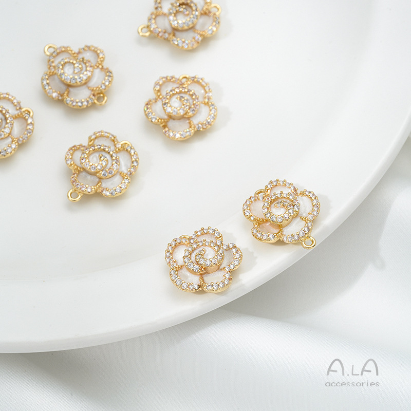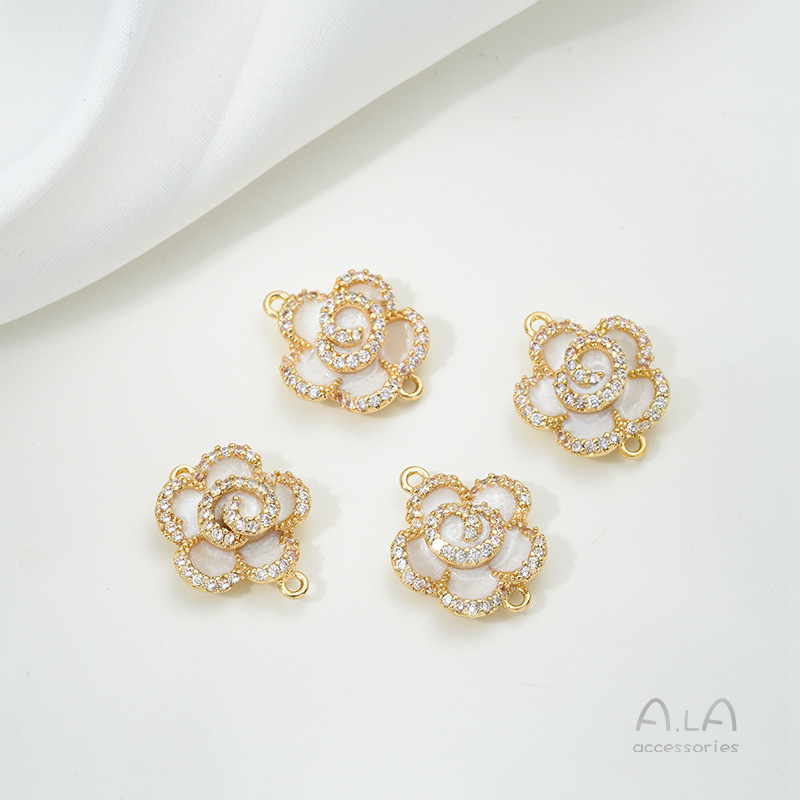 14K 금으로 채워진 색상 보존 지르콘 오일 드롭 장미 꽃 펜던트 diy 수제 더블 펜던트 액세서리 수제 보석 재료스토어 가기