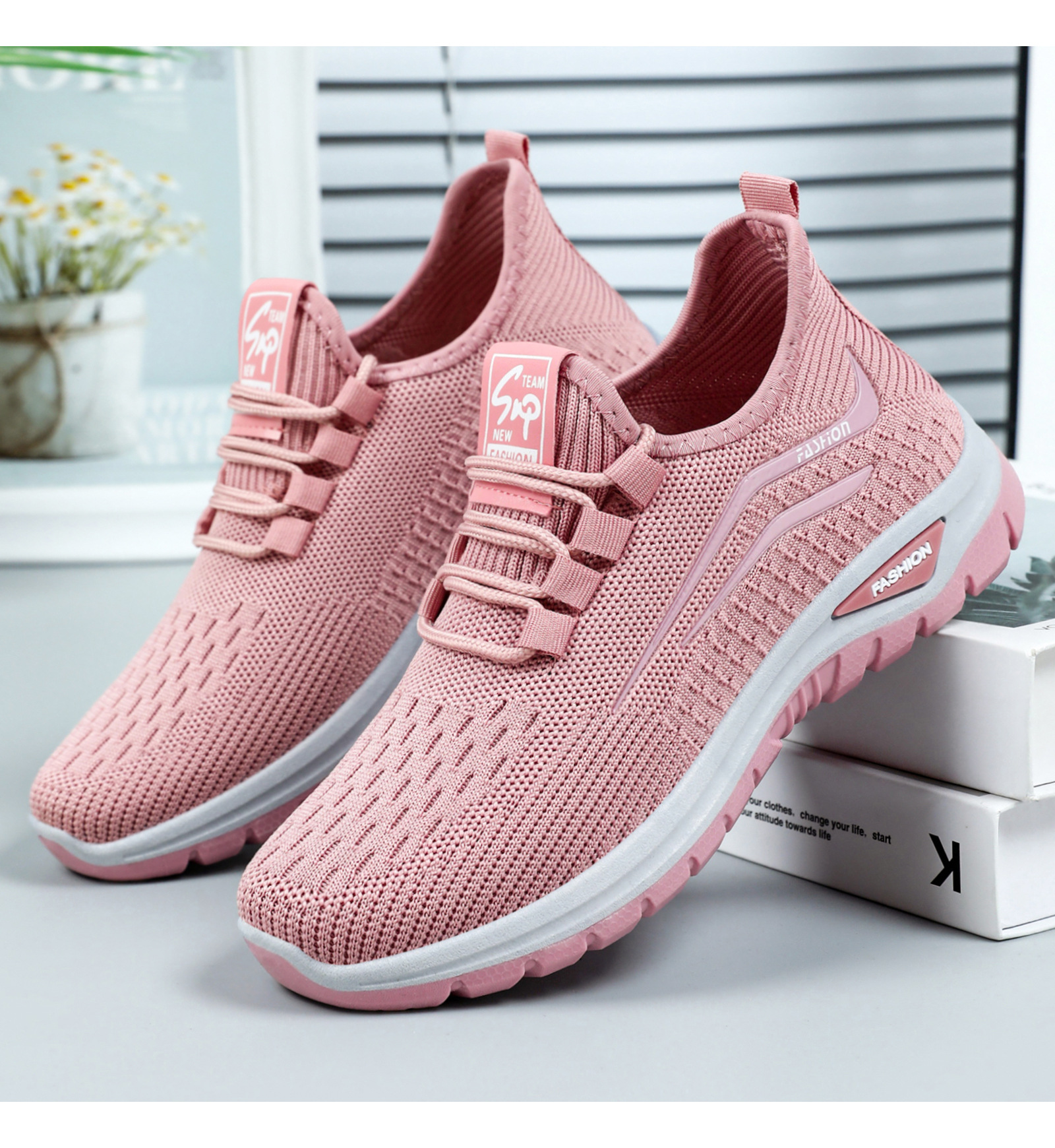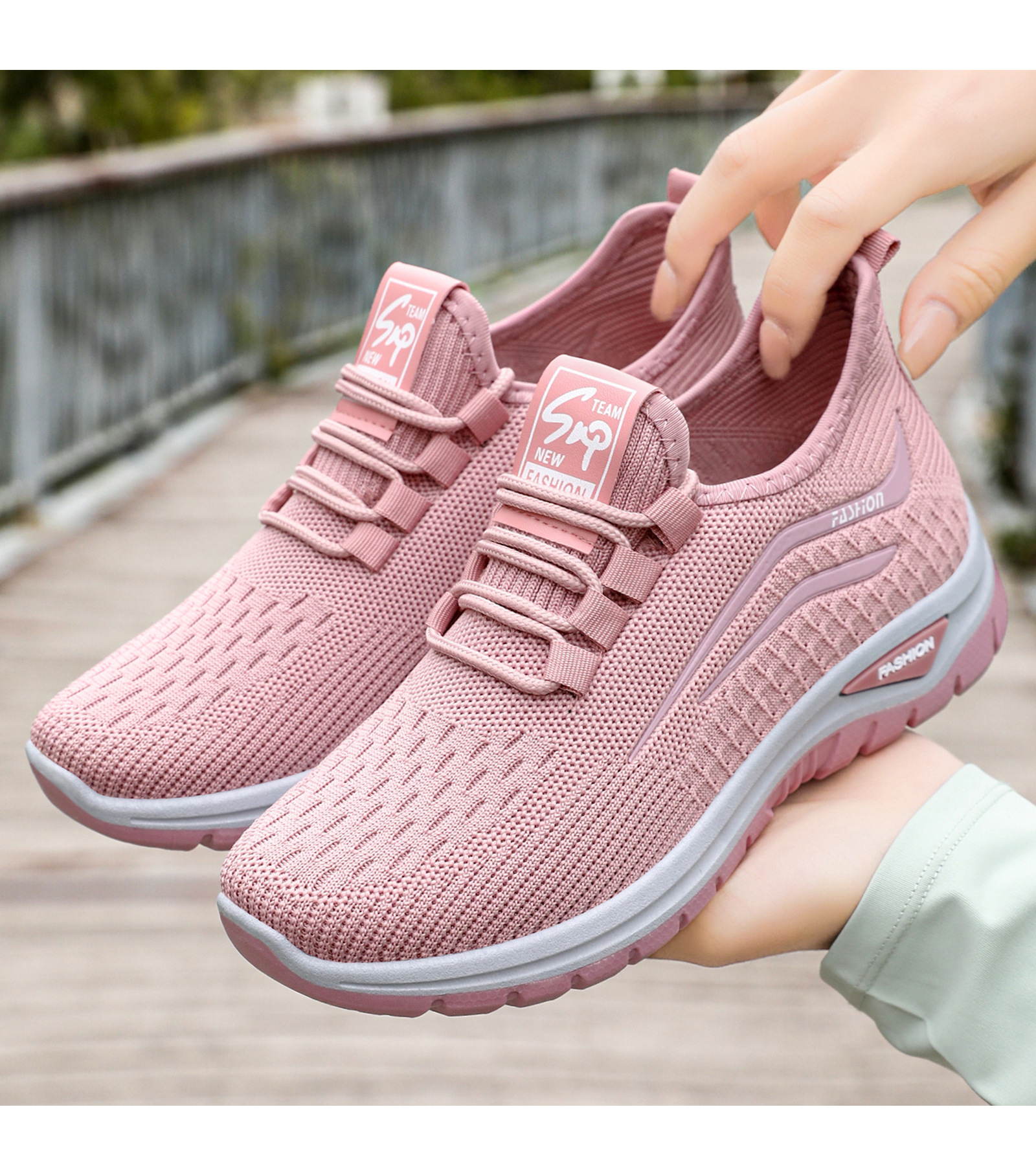 여름 새 신발 여성 캐주얼 신발 국경 간 도매 플라이 짠 레이스 업 여성 신발 통기성 및 답답하지 않은 운동화스토어 가기