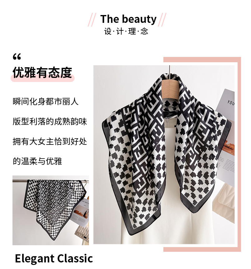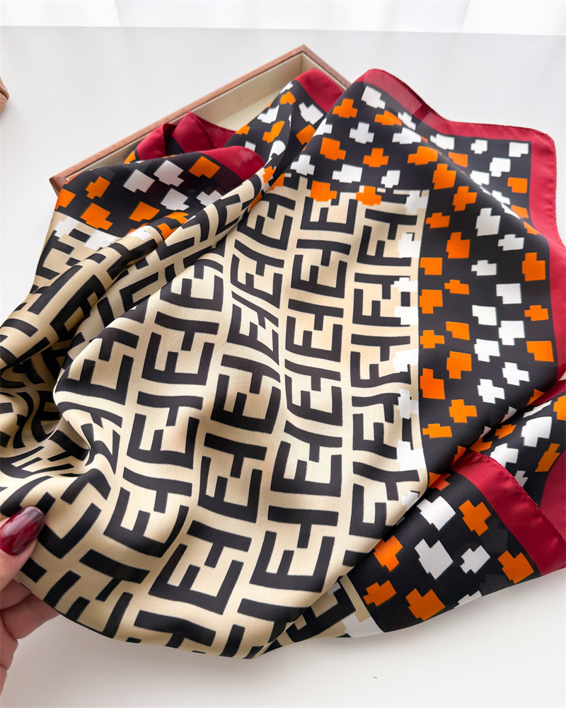 대비되는 색상의 기하학적 프린트 실크 스카프, 고급 숄, 전문적이고 다재다능한 넥 스카프, 여성용 스카프스토어 가기
