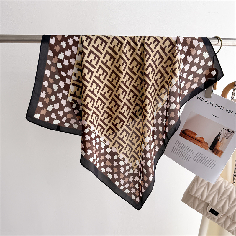 대비되는 색상의 기하학적 프린트 실크 스카프, 고급 숄, 전문적이고 다재다능한 넥 스카프, 여성용 스카프