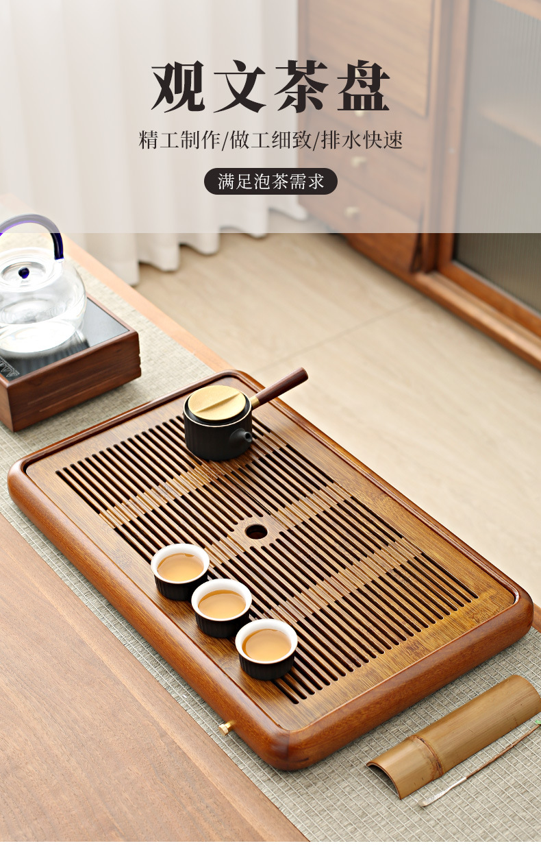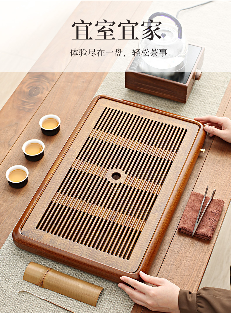 도매 나무 차 쟁반 가정용 물 저장 차 바다 장미 나무 건조한 양조 차 테이블 트레이 배수 콘센트와 거실 물 저장 유형스토어 가기