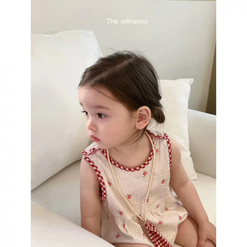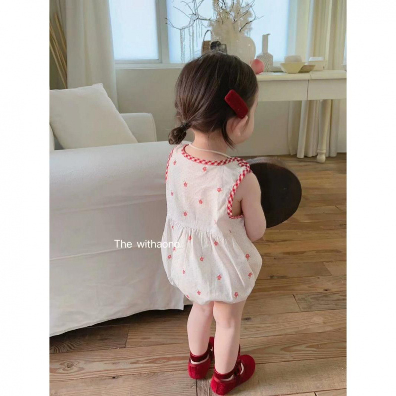 2025 여름 아기 조끼 면 패딩 의류 한국식 꽃 가방 방귀 옷 아기 소녀 슈퍼 귀여운 점프 수트스토어 가기
